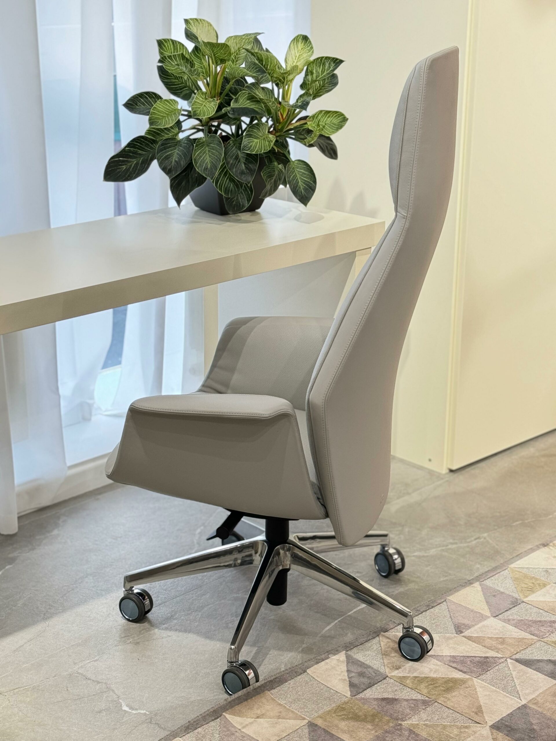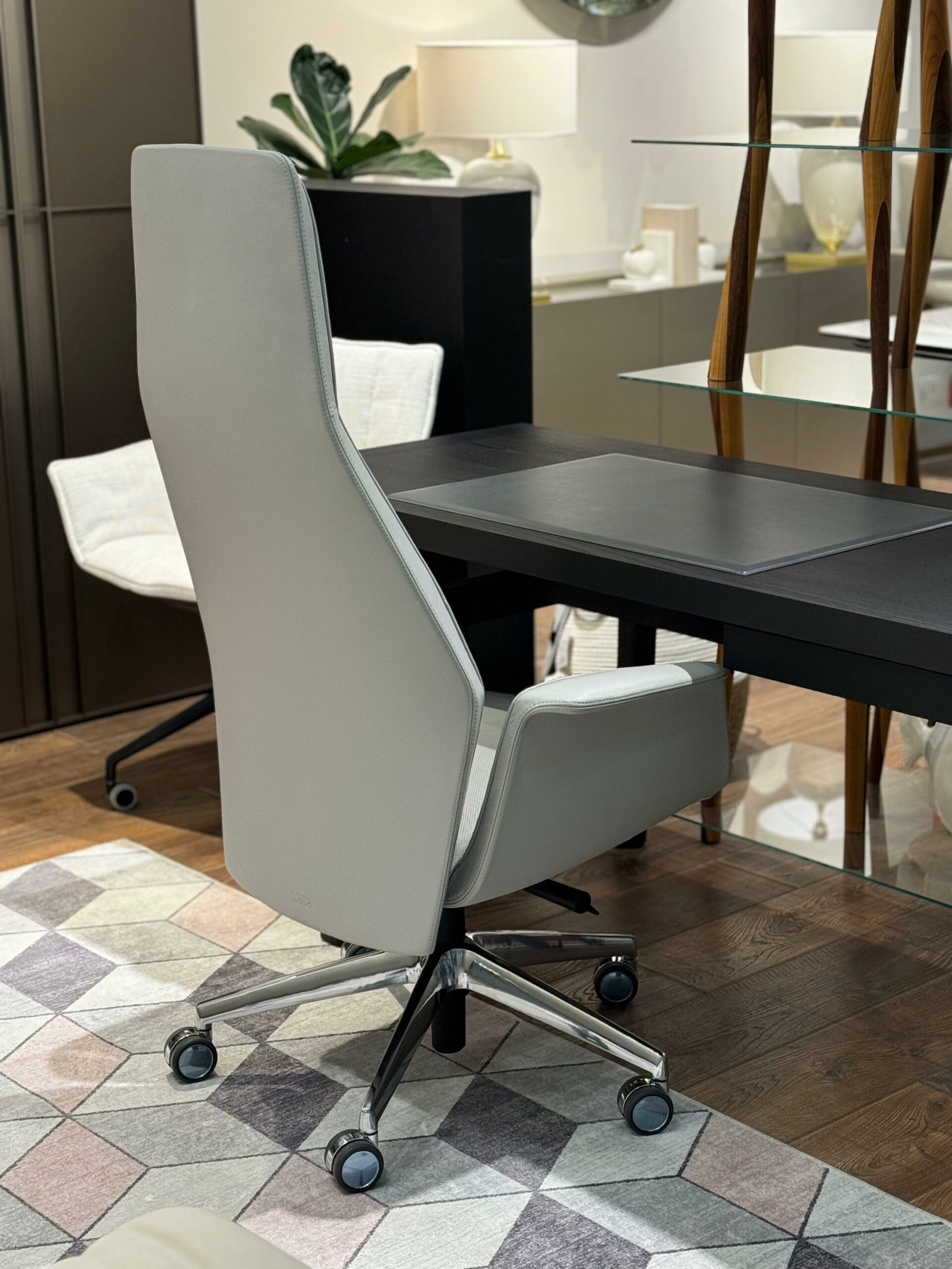 Кресло Downtown доступно в пяти версиях: President, Executive, Managerial, Meeting и Visitor. Обивка, украшенная тон-в-тон или контрастной строчкой, выполнена из кожи Pelle Frau®, также доступна в версии с микроперфорацией на внутренней поверхности спинки, подлокотников и подушки. В версиях President, Executive, Management и Meeting основание из полированного или черного лакированного алюминия состоит из пяти спиц с мягкими поворотными роликами с автоматическим торможением «W», которые адаптируются ко всем типам пола. Между тем, версия Visitor имеет четырехспицевое основание с пластиковыми поворотными направляющими, которые также доступны для других моделей по запросу. Кресла Downtown регулируются по высоте и могут поворачиваться, потянув за рычаг под сиденьем справа. Президентская, исполнительная и управленческая версии поставляются с механизмом колебаний «Syncron» для спинки и сиденья, который позволяет креслу приспосабливаться к телу пользователя, поддерживая его движения и обеспечивая необычайный комфорт. Механизм кресла позволяет фиксировать его в четырех различных положениях. Downtown Meeting может поворачиваться благодаря упорному подшипнику. Downtown Visitor оснащен поворотным механизмом с автоматическим возвратом, упорный подшипник которого позволяет креслу вращаться и возвращаться в исходное положение.