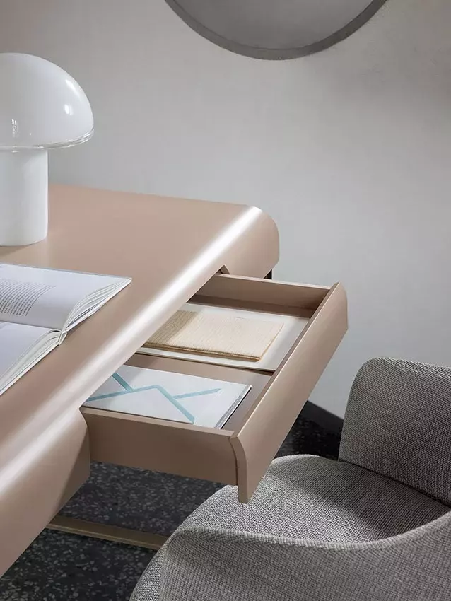 Стол Alphabet сочетает в себе ретро-эстетику и современную лаконичность. Округлые линии, изящные изгибы и продуманные пропорции делают его универсальным решением для дома, офиса или премиального отельного пространства. Дизайн 967Arch, вдохновленный эволюцией письменных инструментов, подчеркивает элегантность и индивидуальность.