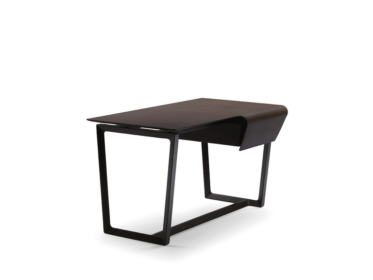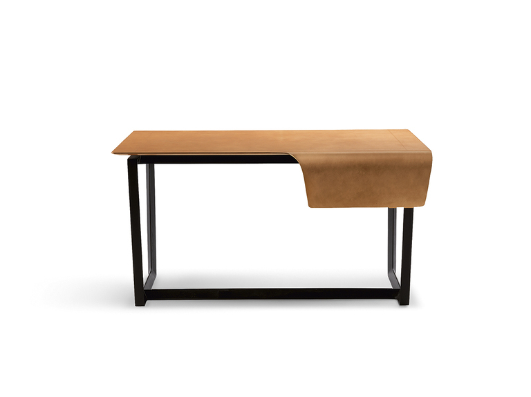 Поверхность стола покрыта кожей Cuoio Saddle Extra толщиной 4 мм, что придаёт изделиям благородный вид. Необработанный краевой шов отделан воском, а металлическая фурнитура с гальваническим покрытием добавляет долговечности.