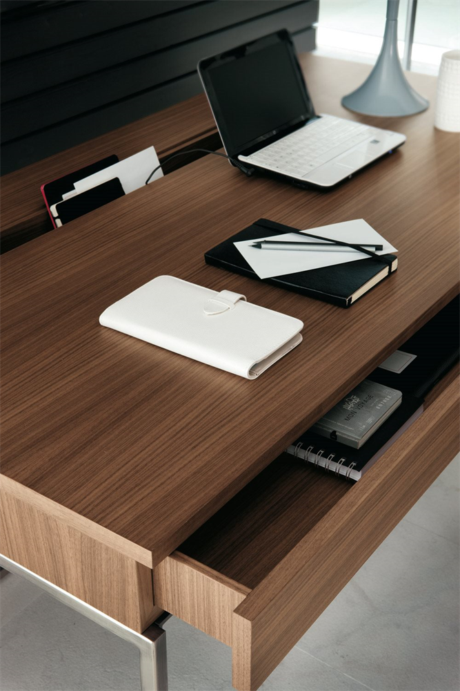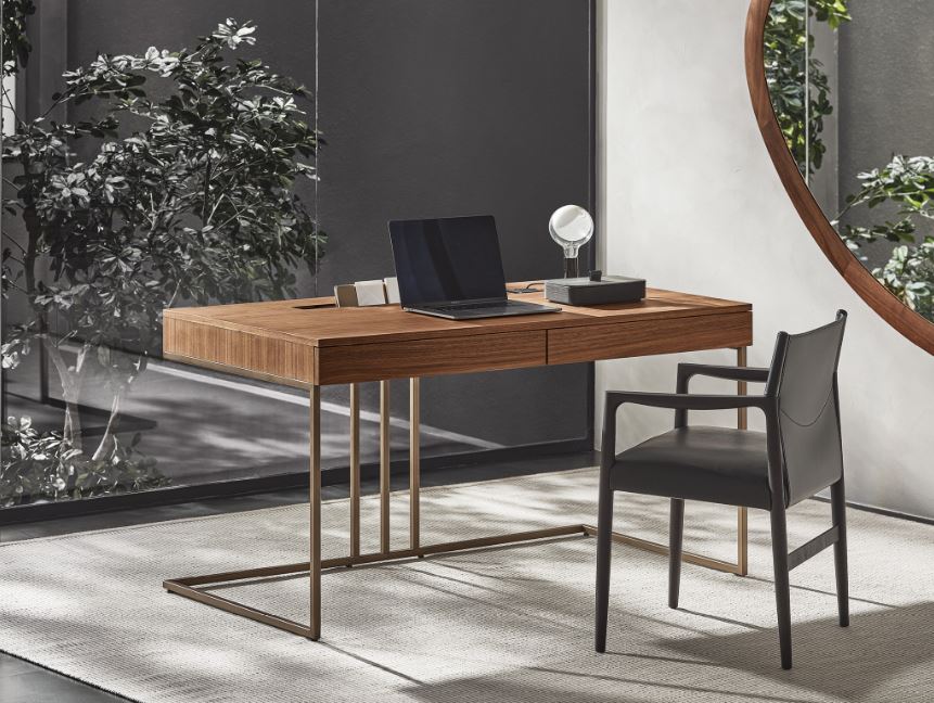 Каждая деталь стола Kepler отражает высочайшие стандарты итальянского дизайна. Его элегантные линии и гармоничные пропорции подчеркивают утонченный вкус владельца. Изготовленный из высококачественного орехового дерева каналетта, стол сочетает в себе классические элементы и современный функционал. Два вместительных ящика и специальный вещевой ящик обеспечивают удобное хранение, в то время как отверстие для кабеля позволяет легко подключать технику, не нарушая эстетики.