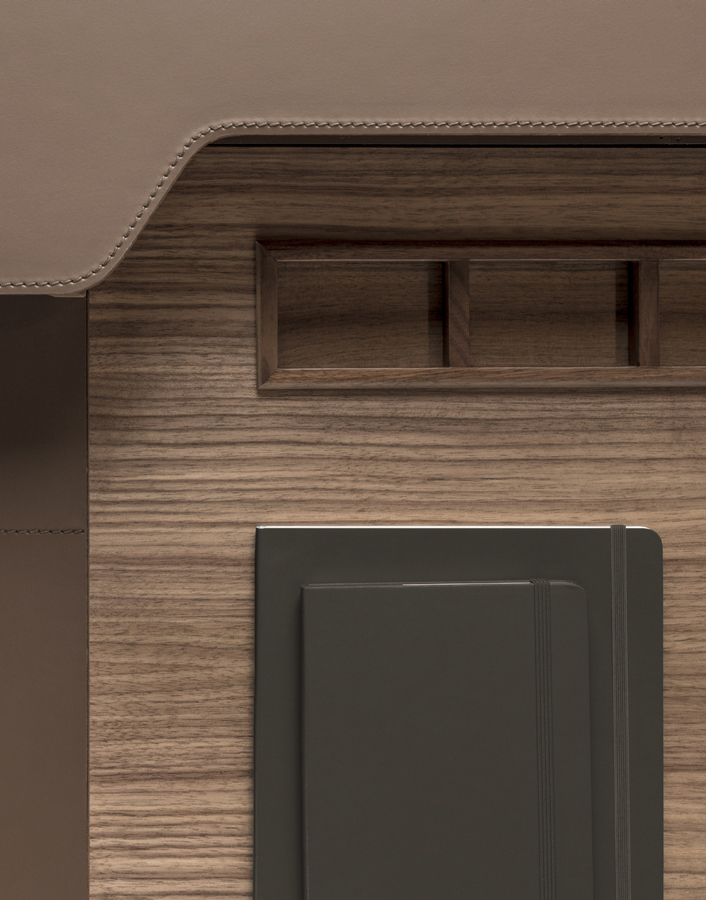 Письменный стол MN903 от итальянской фабрики MEDEA — элегантное сочетание натурального дерева и благородных кожаных вставок. Изысканный дизайн с продуманной эргономикой подчеркнет статус вашего кабинета или домашнего офиса.