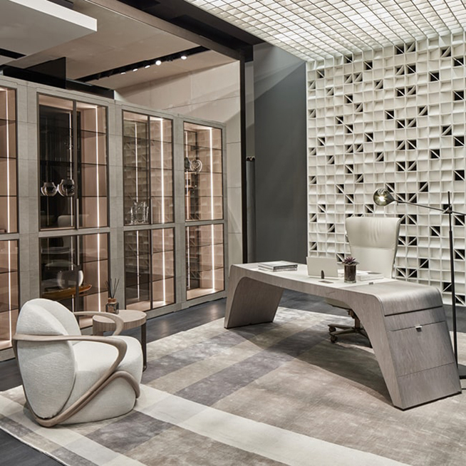 Погрузитесь в мир изысканной итальянской мебели с письменным столом TENET от знаменитой фабрики GIORGETTI. Этот стол — не просто предмет интерьера, а настоящий символ статуса и утонченного вкуса. Вдохновленный традициями итальянского дизайна, он станет центром вашего рабочего пространства, создавая атмосферу комфорта и роскоши.