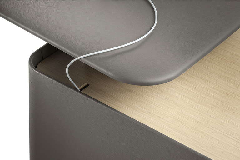Для создания письменного стола использованы только самые благородные материалы – седловая кожа и техно-дерево. Эти элементы не только придают столу высококлассный вид, но и обеспечивают долговечность и износостойкость. Полное отсутствие швов, достигнутое благодаря мастерской обработке, подчеркивает как высокие технологии, так и традиционное ремесло.