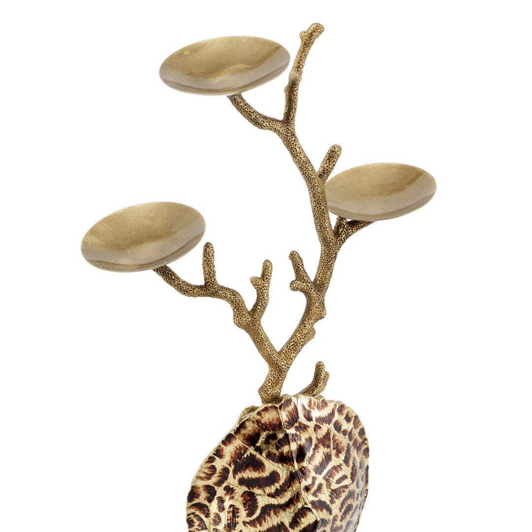 Подсвечник ART OBELISK — это настоящий шедевр, выполненный в форме обелиска. Его коралловая металлическая структура, дополненная хрустальной основой ручной резки, создает эффектный контраст и привлекает взгляд. Расписанный вручную панцирь черепахи добавляет уникальности и характерности этому изделию. Размеры подсвечника: высота 75 см и основание 24×11 см, что делает его идеальным для любого интерьера — от классического до современного.
