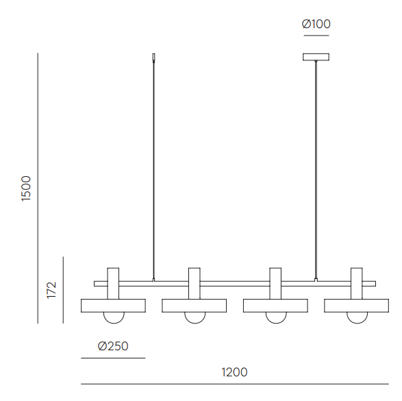 Светильник оснащён 4 патронами E27; максимальная мощность ламп — 60 Вт; напряжение 220–240 В; частота 50/60 Гц; степень защиты IP20; энергетическая маркировка A++.