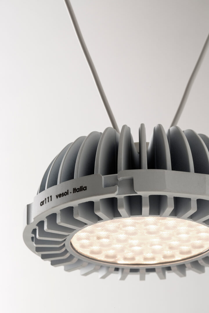 Дизайнеры VESOI создали уникальный подвесной светильник, который можно регулировать по высоте благодаря специальному электрическому кабелю, диапазон которого составляет от 50 до 300 см. Это позволяет легко адаптировать светильник под любые условия и предпочтения, создавая уютное освещение для вечерних встреч или яркое свечение для работы. Округлая форма и лаконичные линии делают AR111 универсальным решением для различных стилей оформления.