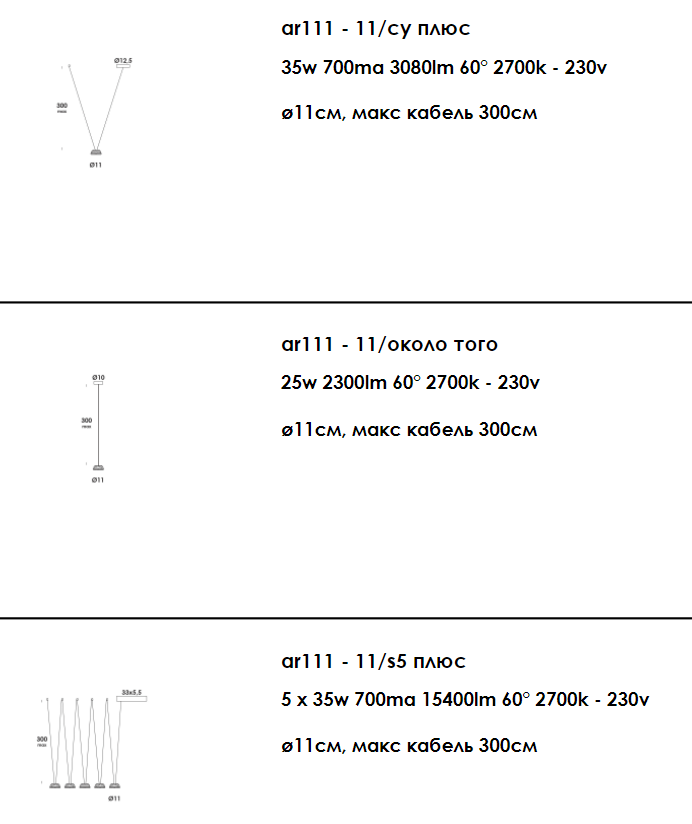 Изготовленный из прочного алюминия, светильник AR111 предлагает не только привлекательный внешний вид, но и долговечность. Окрашенная или оцинкованная отделка обеспечивает стойкость к внешним воздействиям, что делает его идеальным выбором для любого интерьера. Светодиодный модуль обеспечивает энергоэффективность, позволяя наслаждаться качественным освещением при минимальных затратах электроэнергии. По запросу доступны различные цвета и длины кабеля, а также возможность дистанционного диммирования, что добавляет еще больше удобства в использовании.