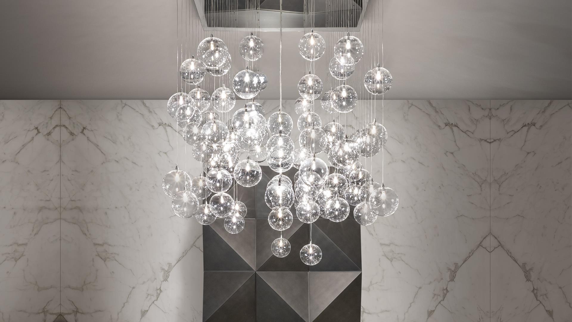 Каждая линия светильника BULLES продумана до мелочей. Его дизайн сочетает в себе современные тенденции и классическую итальянскую школу, создавая уникальный визуальный эффект. Плавные изгибы, игра света и тени, динамичные формы — все это делает его центральным элементом интерьера. Светильник идеально впишется в гостиные, столовые или холлы, добавляя пространству ауру респектабельности и изысканности.