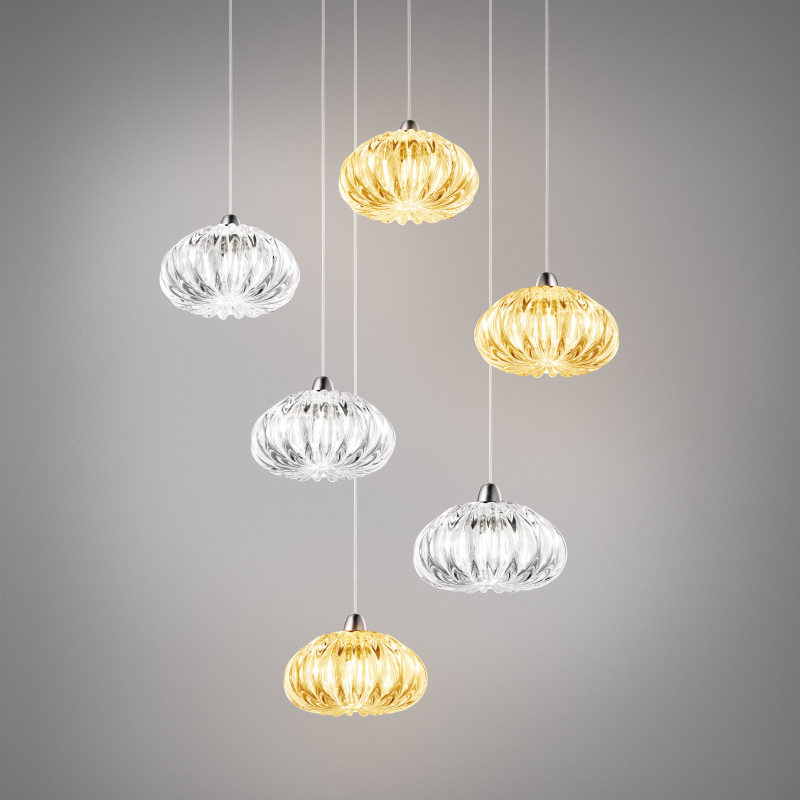 Итальянская фабрика VISTOSI использует только натуральные и премиальные материалы, подчеркивающие статус владельца. Основой светильника стало муранское стекло, известное своей прозрачностью и глубиной цвета. Каждый элемент выдувается вручную мастерами, чьи навыки передаются из поколения в поколение. Металлическая фурнитура выполнена из латуни или нержавеющей стали, что гарантирует долговечность и безупречный внешний вид.