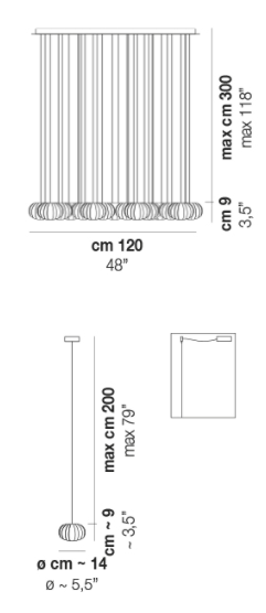 Доступен в трех размерах, может использоваться как подвесной светильник, бра, потолочная, настольная или напольная лампа, а также в составе композиции. Идеальное решение для создания утонченного интерьера с итальянским акцентом.