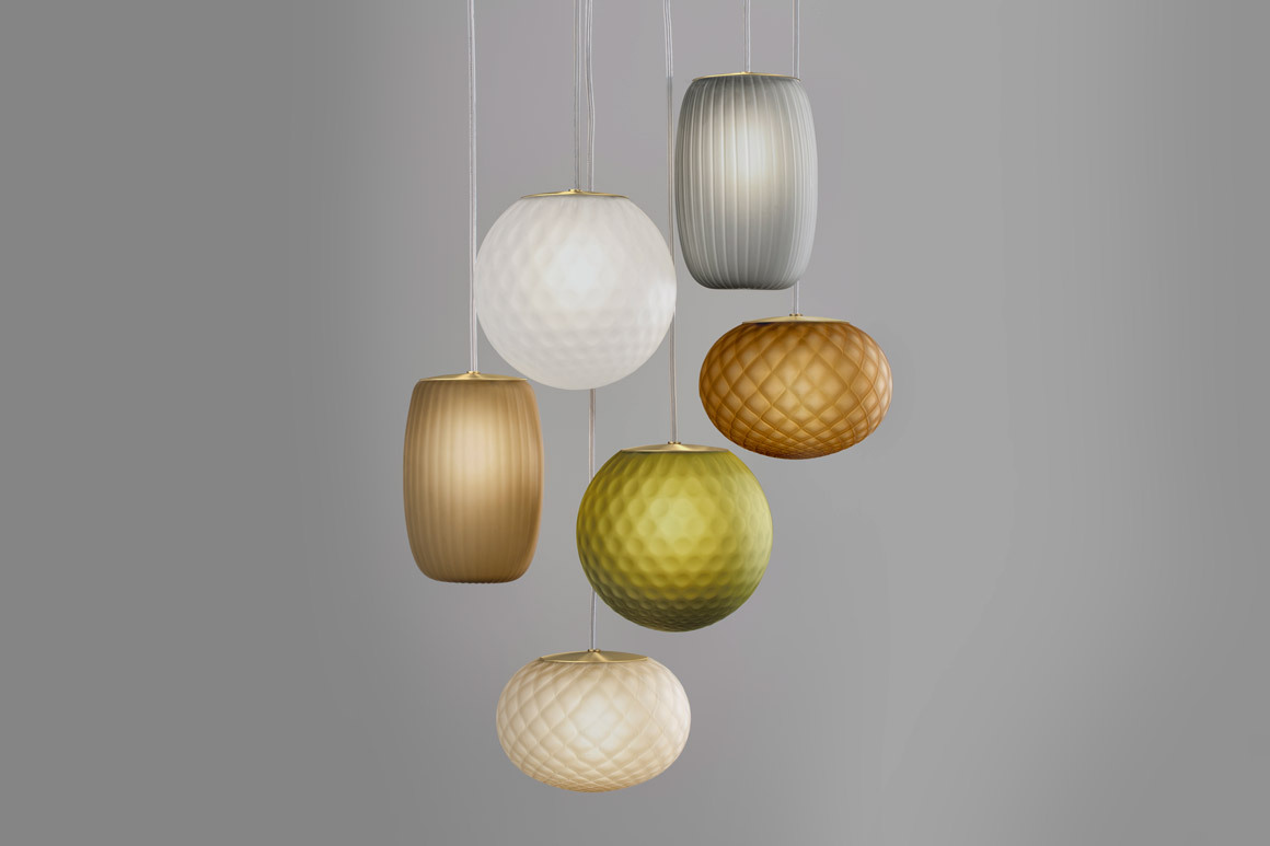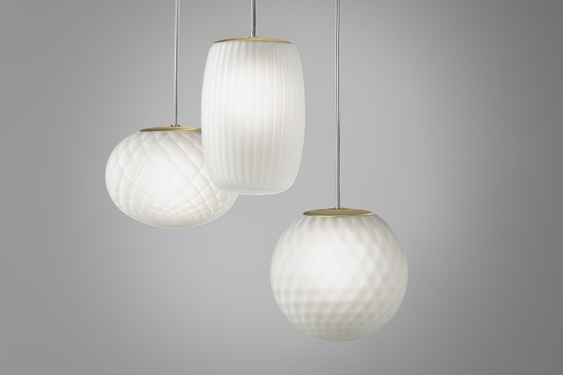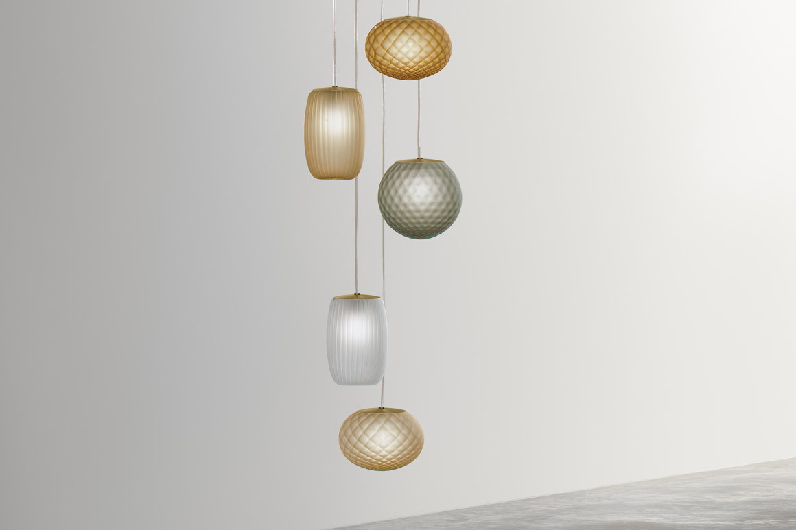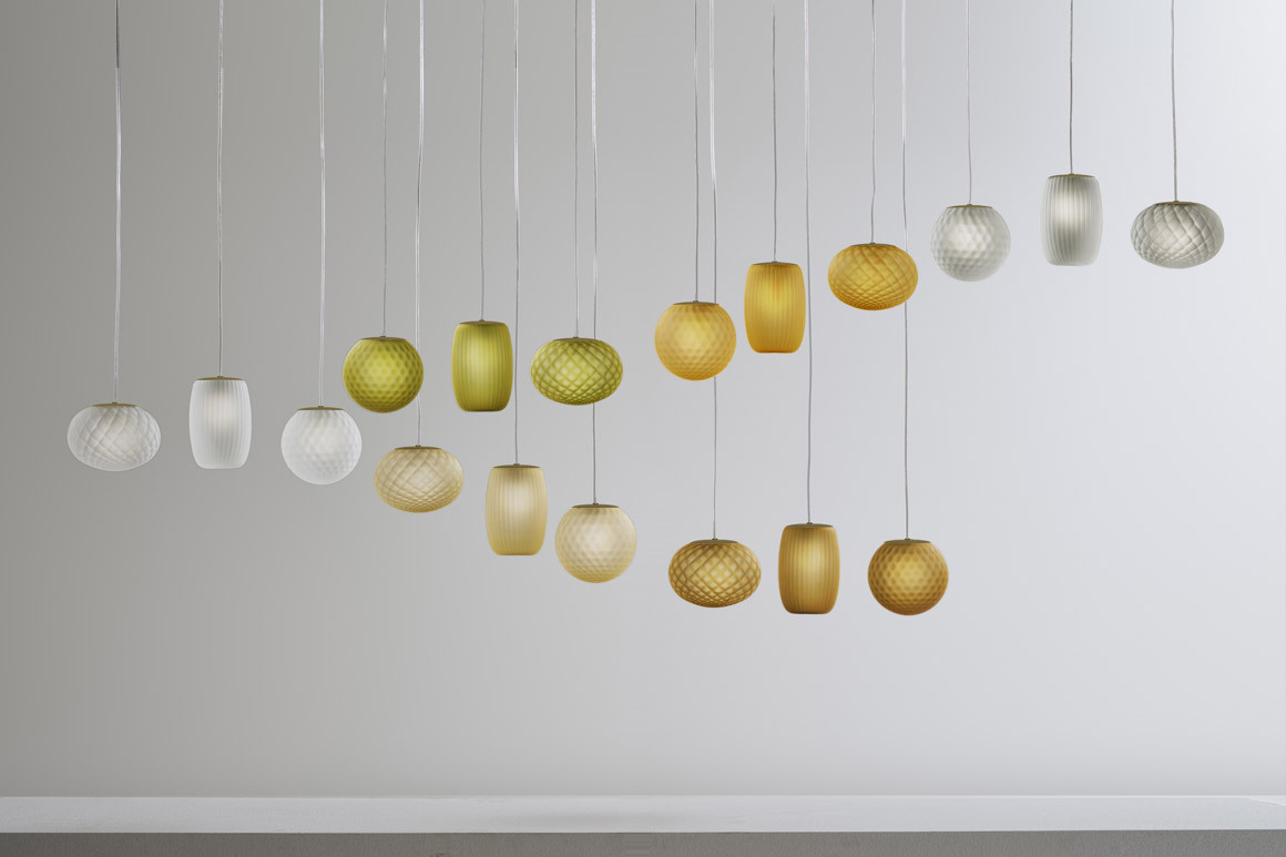 Рассеиватель из выдувного стекла доступен в различных отделках: хрустальной, стальной, янтарной, бронзовой, табачной или зеленой.