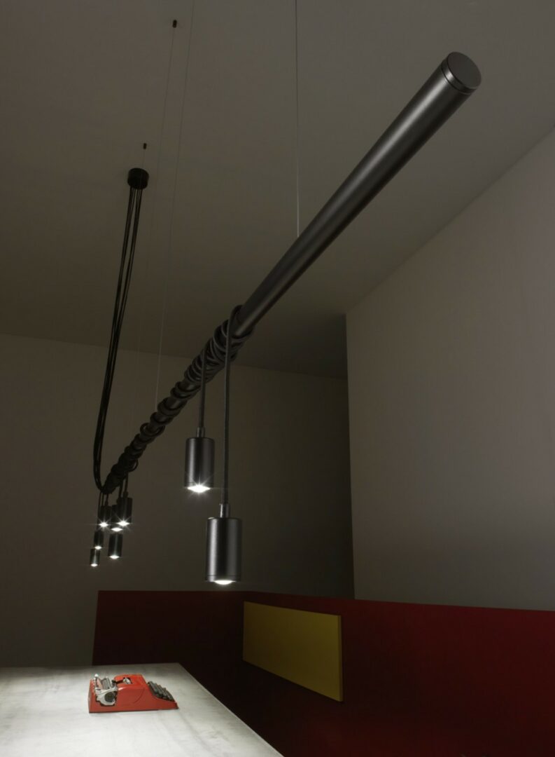 Подвесной светильник Ideabarra от итальянской фабрики VESOI — это идеальное сочетание утонченного дизайна и функциональности. Изготовленный из прочной стали с хромированной отделкой, он предлагает возможность регулировки высоты и выбора цвета электрических кабелей, что позволяет адаптировать его под любые интерьеры.