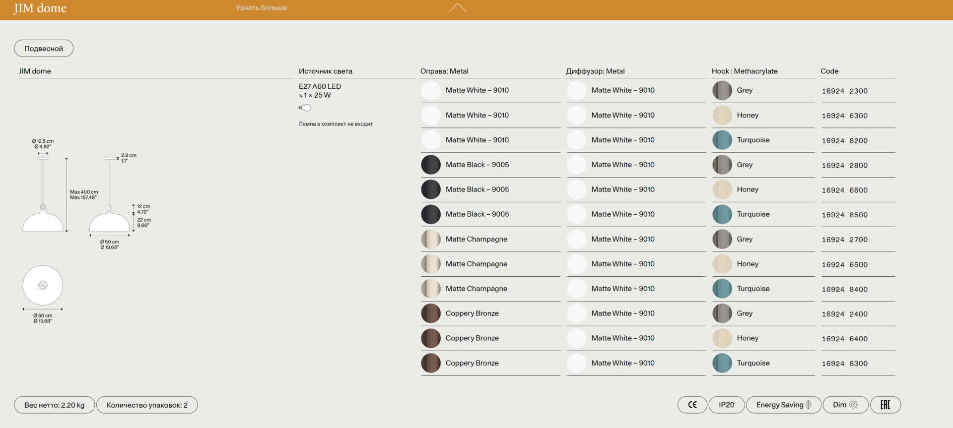 JIM dome — это лаконичный, но выразительный светильник, который станет акцентом в любом пространстве. Его куполообразная форма создает мягкое, рассеянное освещение, идеальное для гостиных, столовых или зон отдыха. Дизайн подчеркивает минимализм с элементами элегантности, что делает его универсальным решением как для классических, так и для современных интерьеров.