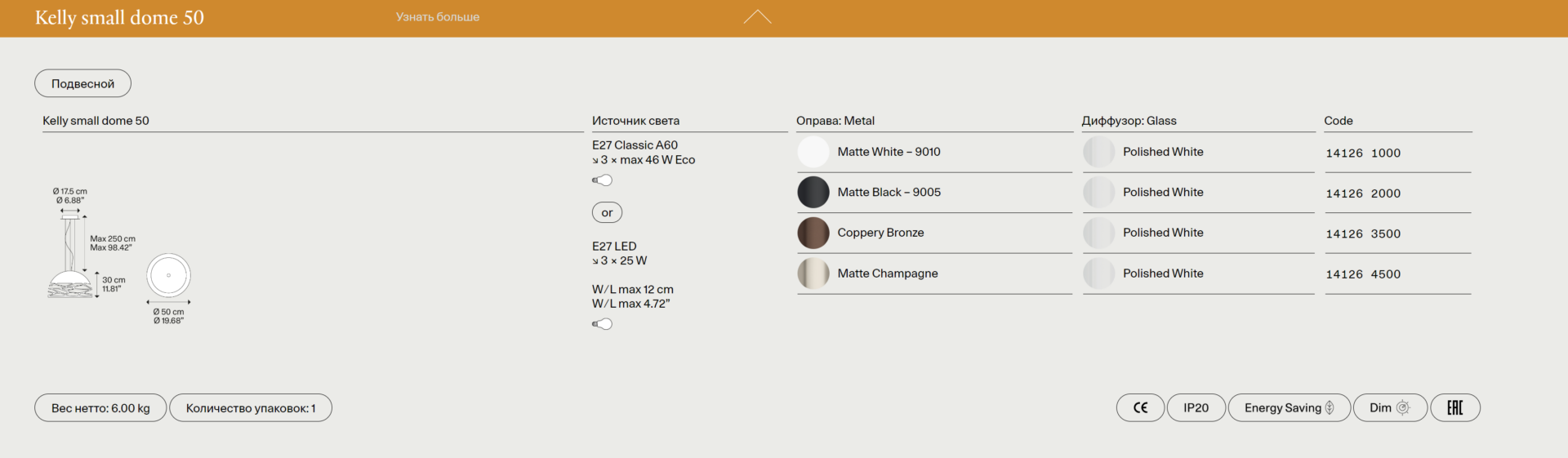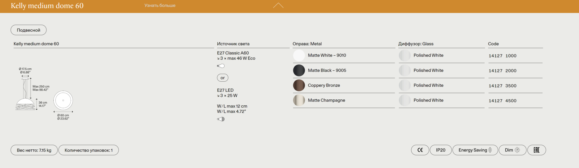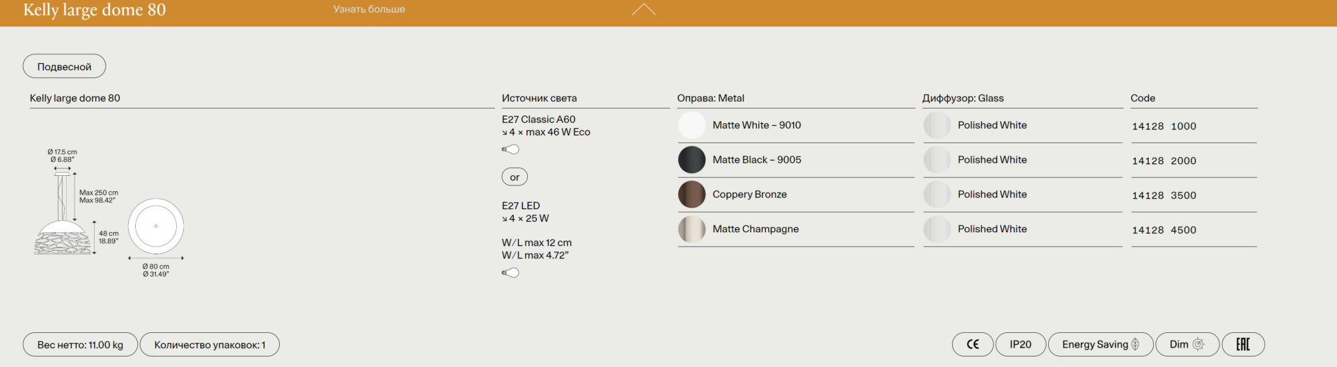 Светильник производится в Италии, что гарантирует безупречное качество и внимание к деталям. Элегантный и современный, Kelly станет стильным акцентом в любом интерьере.