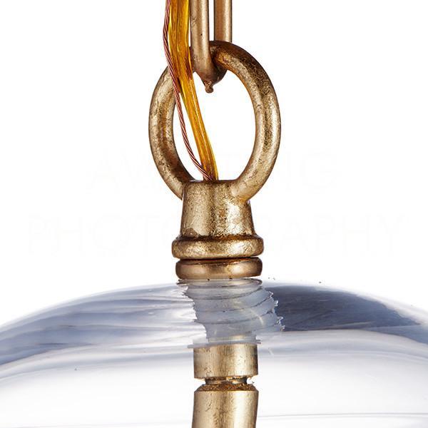 Каждая деталь светильника LIBERTY изготовлена из высококачественных материалов, гарантирующих не только эстетическое совершенство, но и долговечность. Абажур из стекла и металла с изысканным покрытием поталью создает эффект драгоценного мерцания, а прочная цепь длиной 150 см позволяет регулировать высоту подвеса для идеального размещения в интерьере.