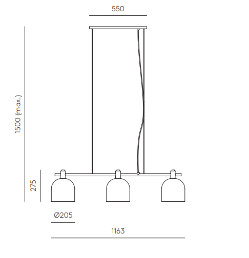 Светильник оснащён 3 патронами E27; максимальная мощность ламп — 60 Вт; напряжение 220–240 В, частота 50/60 Гц; степень защиты IP20; класс I.