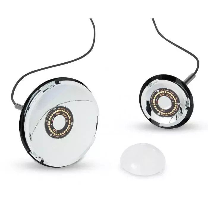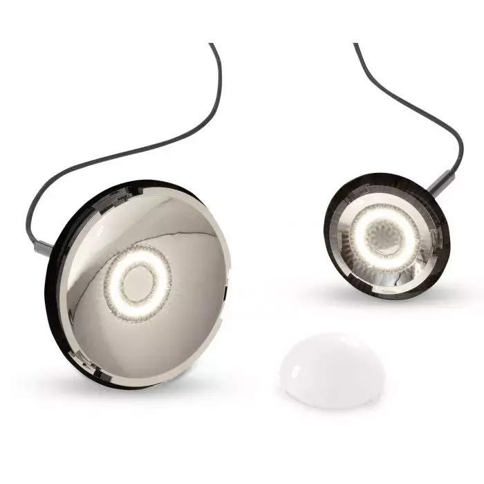 Светильник выполнен в форме зеркального шара, который отражает и преломляет свет, создавая эффект мерцающего звездного неба. Лаконичные линии и хромированная поверхность придают ему футуристичный вид, идеально вписывающийся как в современные, так и в классические интерьеры. Линейная подвесная система позволяет комбинировать несколько светильников, формируя уникальные световые композиции.