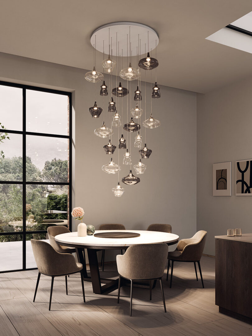 Форма светильника Nostalgia вдохновлена винтажными люстрами, но переосмыслена через призму современного дизайна. Его плавные линии и сдержанная геометрия создают ощущение легкости и изысканности. Каждая деталь продумана до мелочей — от пропорций до способа крепления, что делает его идеальным выбором для гостиных, столовых или холлов премиум-класса. Светильник излучает мягкий, рассеянный свет, который подчеркивает фактуру материалов и создает атмосферу уюта.