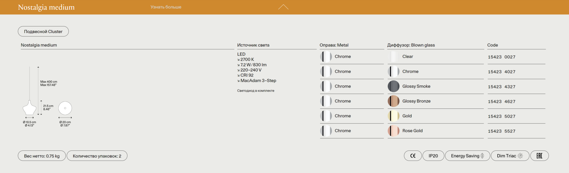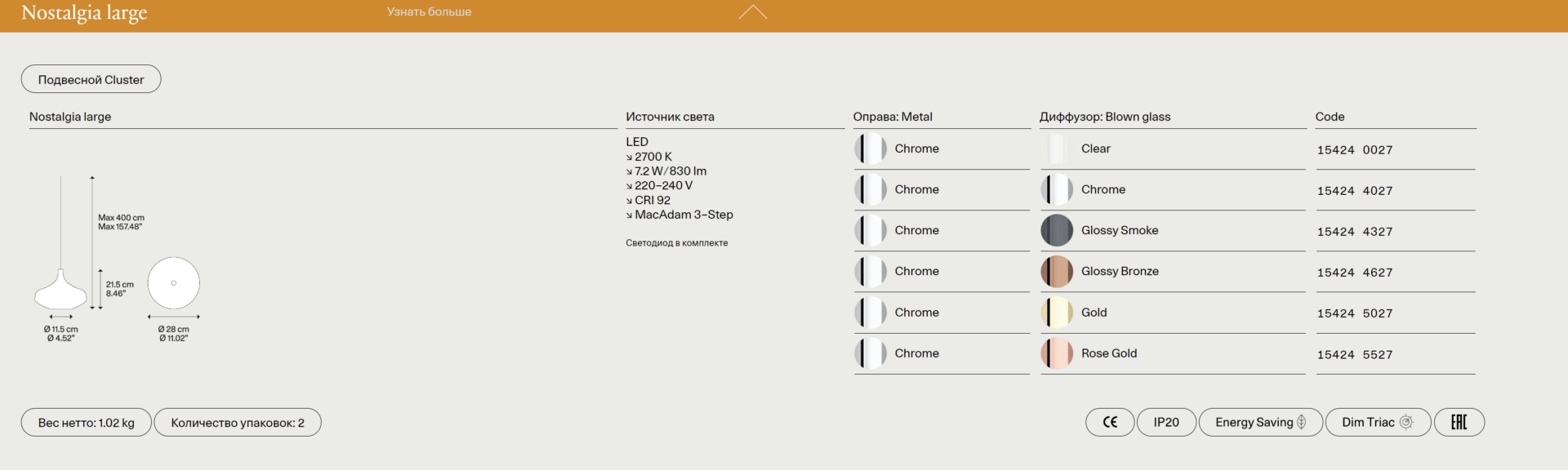 Итальянская фабрика LODES сочетает традиционные методы производства с передовыми технологиями. Nostalgia оснащен энергоэффективными светодиодными лампами, которые можно регулировать по яркости, создавая нужную атмосферу. Инженерные решения позволяют легко интегрировать светильник в систему умного дома, сохраняя при этом его эстетическую чистоту.