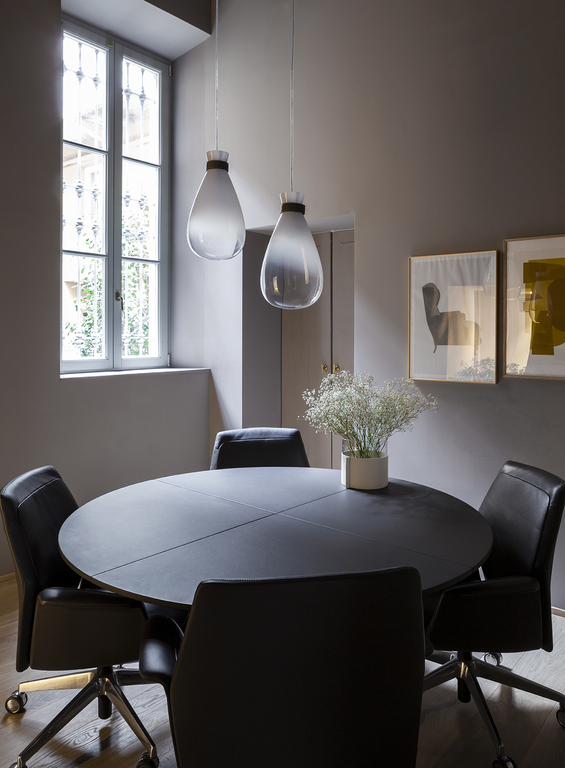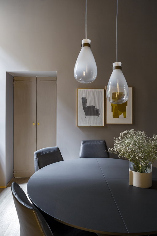 Светильники Soffi выполнены из двух элементов, каждый из которых изготовлен вручную из выдувного стекла. Внешний шар, обладающий почти невесомым видом, представлен в блеклых молочно-белых или дымчато-серых тонах, создавая эффект воздушности. Внутренний светильник, выполненный из матового белого стекла с жемчужной отделкой, придает изделию особую прочность и элегантность. Свет, который излучает лампа, равномерно рассеивается, подчеркивая благородный цвет внешнего стекла и его плавную прозрачность.