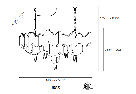 Stream изготовлен из высококачественных материалов, что гарантирует долговечность и надежность. Никелированная рама не только придает светильнику современный вид, но и защищает его от повреждений. Использование металлической цепи в конструкции обеспечивает легкость и воздушность образа, создавая ощущение, что светильник парит в воздухе.