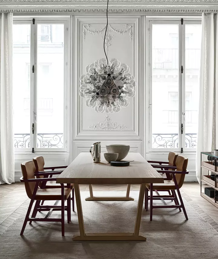 Дизайн TARAXACUM 88 отличается современными и чистыми линиями, которые идеально вписываются в любой стиль интерьера. Структура светильника состоит из 20 прессованных и полированных алюминиевых треугольников, которые обеспечивают не только стильный внешний вид, но и высокую функциональность. Это сочетание прямого и отраженного освещения позволяет создать уютную атмосферу, наполняя пространство мягким и гармоничным светом.