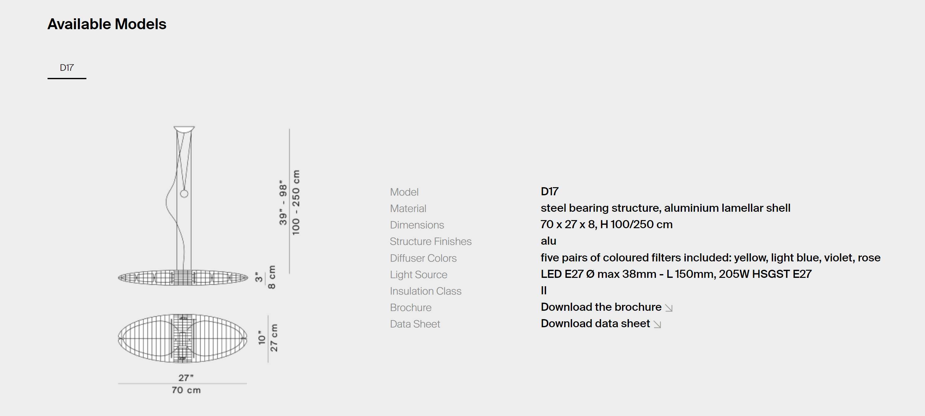 Особенность модели – возможность менять цвет с помощью поликарбонатных фильтров, сохраняя при этом качество белого света. Регулируемая высота благодаря сферическому противовесу позволяет адаптировать светильник под любые пространства.