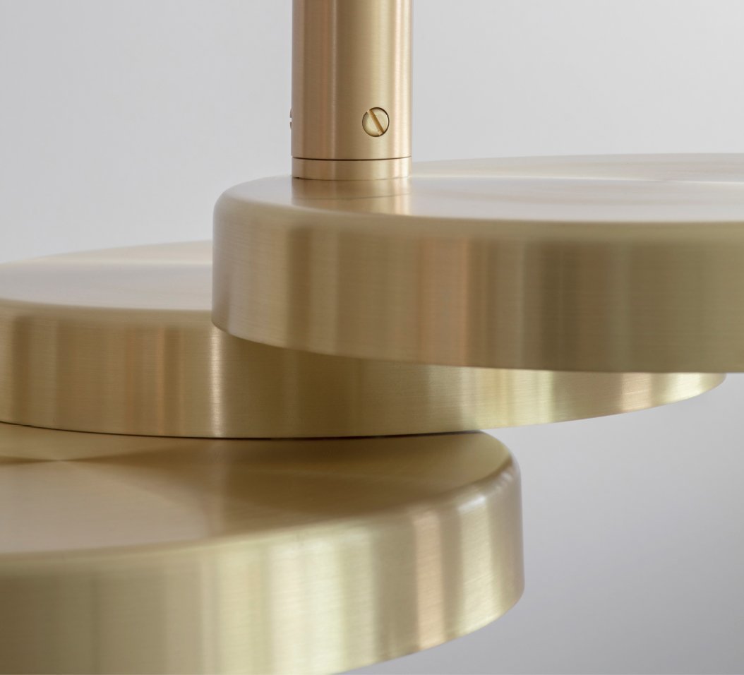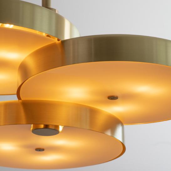 Подвесной светильник TRIARC от итальянской фабрики BERTFRANK – это элегантное сочетание лаконичного дизайна и премиального качества. Три пересекающихся латунных диска, свисающих с одного стержня, создают скульптурный акцент в интерьере. Идеально смотрится в группе из нескольких подвесок, формируя стильный визуальный образ.