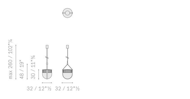 Светильник подвешен на кожаном ремешке Cuoio Saddle Extra, доступном в отделках Camel и Taupe, и дополнен металлической петлей с отделкой из матовой латуни. Такой подход к материалам подчеркивает высокое качество и эксклюзивность изделия.