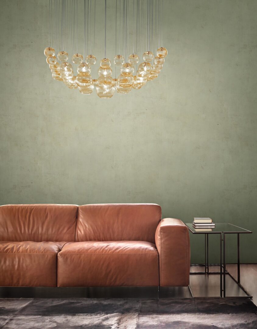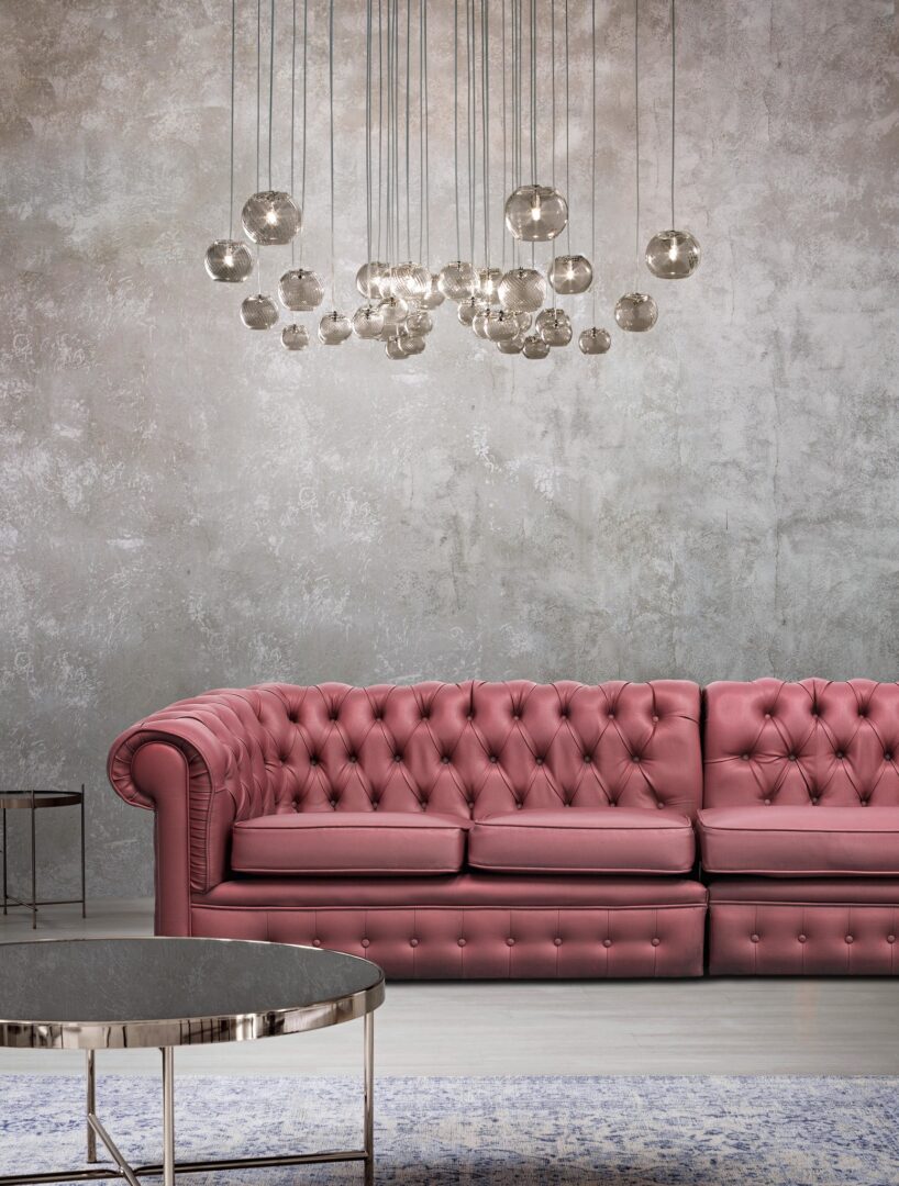 Подвесной светильник Oto от VISTOSI — элегантное итальянское освещение с уникальным дизайном. Сферические стеклянные элементы доступны в четырех размерах и двух вариантах декора — с подсветкой и без.