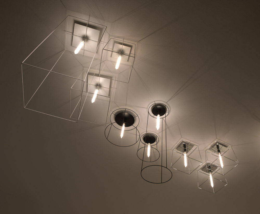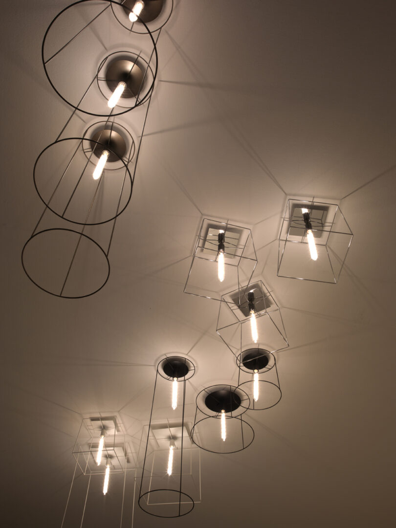 Потолочный светильник IDEATELAIO отличается утончённой простотой и элегантностью. Его каркас из стальной проволоки диаметром 5 мм доступен в нескольких вариантах отделки: тотально белая, полированная или хромированная структура, что позволяет легко адаптировать светильник под любые интерьерные решения. Размеры (высота 35 см, длина 35 см) делают его идеальным для установки в помещениях с низкими потолками, а также в просторных залах, где он станет стильным акцентом.