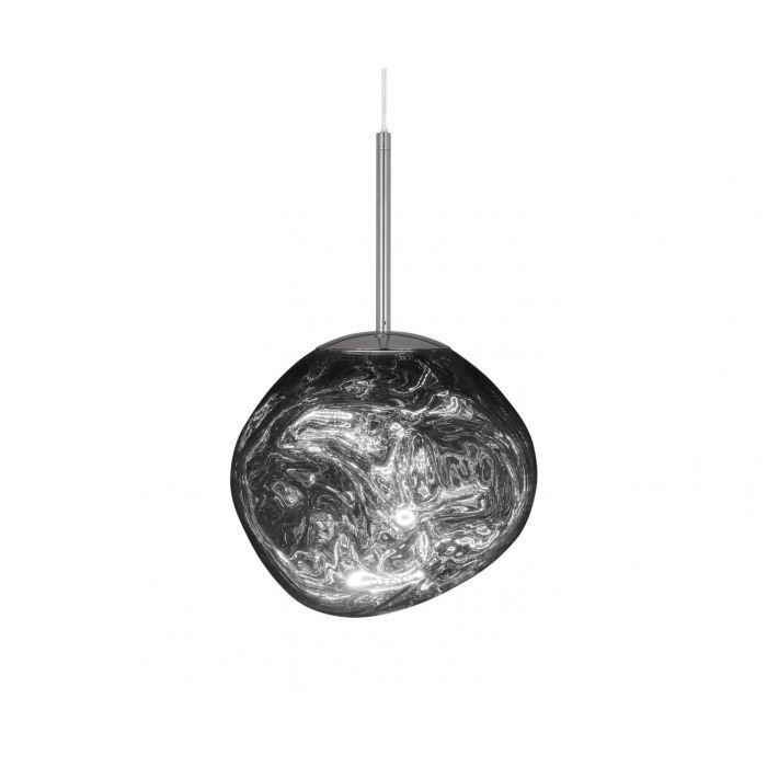 Подвесной светильник MELT MINI LED PENDANT от британского дизайнера Тома Диксона – это эффектный предмет современного освещения, созданный в Италии. Его уникальная форма имитирует расплавленный шар из выдувного стекла, создавая завораживающий световой эффект. При включении светильник излучает мягкий рассеянный свет с галлюциногенными переливами, а в выключенном состоянии превращается в стильный зеркальный элемент интерьера.