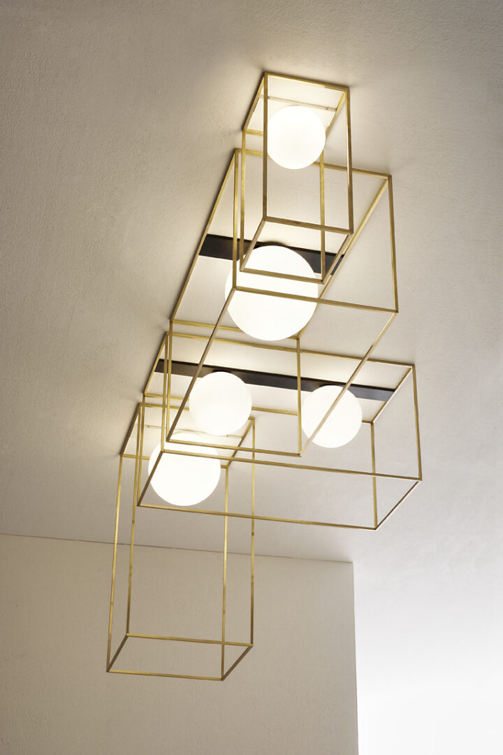 Потолочный светильник MULTIPLO от итальянской фабрики VESOI — это воплощение утонченного дизайна и высочайшего качества. Изготовленный из латуни и стали с отделкой raw или окрашенной латунью, он создаёт уникальную игру света и тени, добавляя глубину вашему интерьеру. Прозрачные или триплексные диффузоры мягко рассеивают свет, создавая теплую атмосферу.