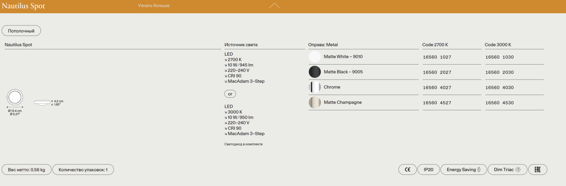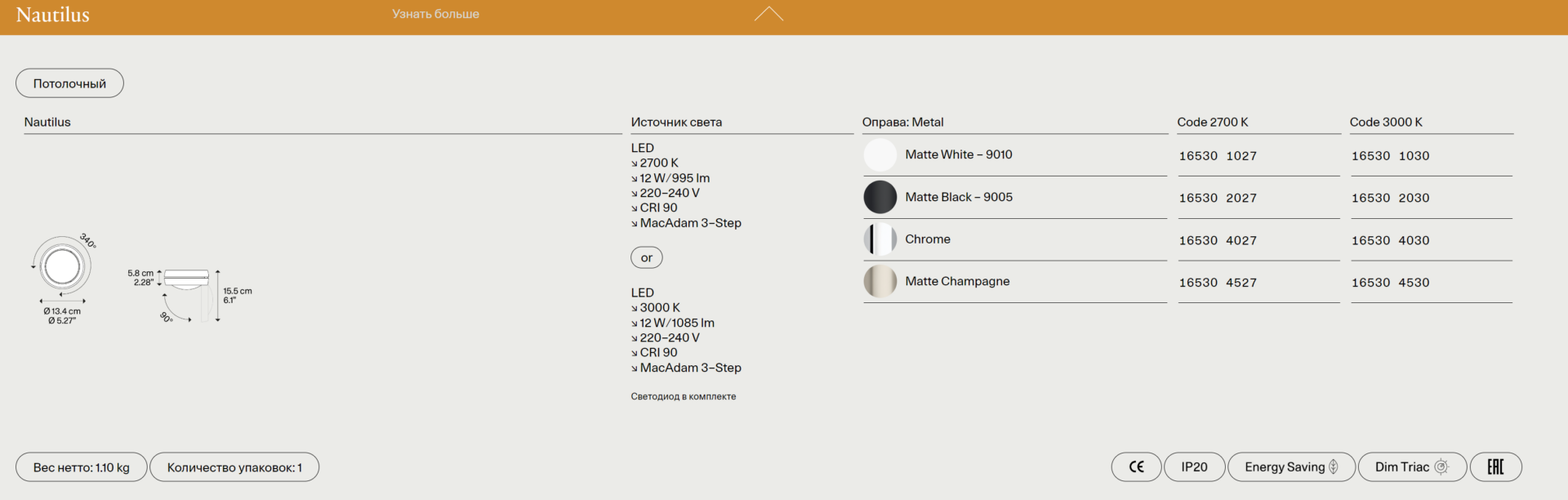 Потолочный светильник Nautilus — это не только эстетика, но и передовые технологии освещения. В его конструкции применены:
