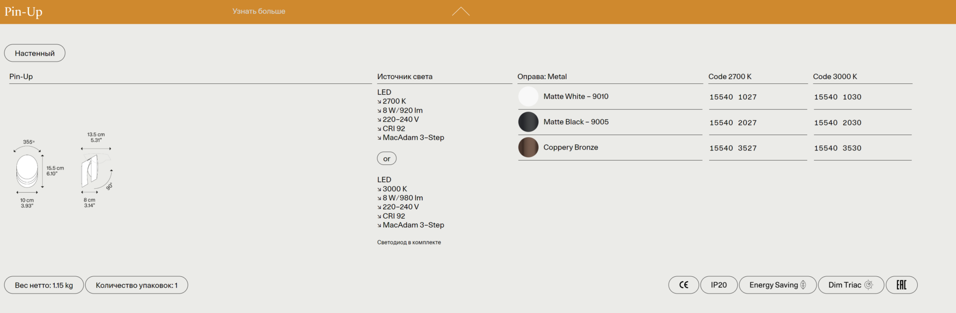 Светильник Pin-Up воплощает современную классику — лаконичные линии, сдержанная геометрия и утонченная простота. Его дизайн создан для ценителей минимализма с премиальным характером. Мягкие изгибы и продуманные пропорции делают его универсальным решением для гостиных, спален, кабинетов или ресторанов высокого уровня. Это выбор тех, кто стремится к эстетике без компромиссов.