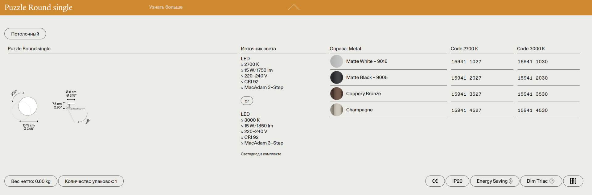 Светильник Puzzle Round отличается лаконичным, но выразительным дизайном, где геометрическая точность сочетается с мягкими линиями. Его круглая форма создает эффект целостности, а игра света и тени добавляет интерьеру глубины. Этот светильник идеально впишется в современные гостиные, спальни или кабинеты, подчеркивая респектабельность и хороший вкус владельца.