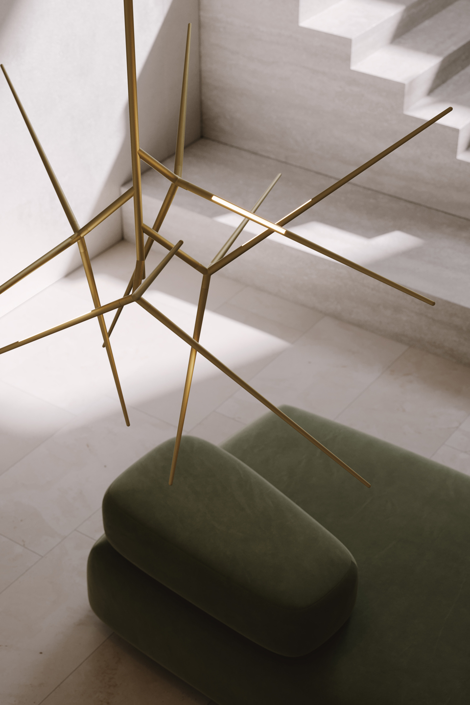 Потолочный светильник SPEAR CHANDELIER от итальянской фабрики VENICEM сочетает современный дизайн с функциональностью. Модель с прямым и косвенным светом оснащена светодиодной полосой внутри рук, обеспечивая мягкое и равномерное освещение. Доступны две версии: