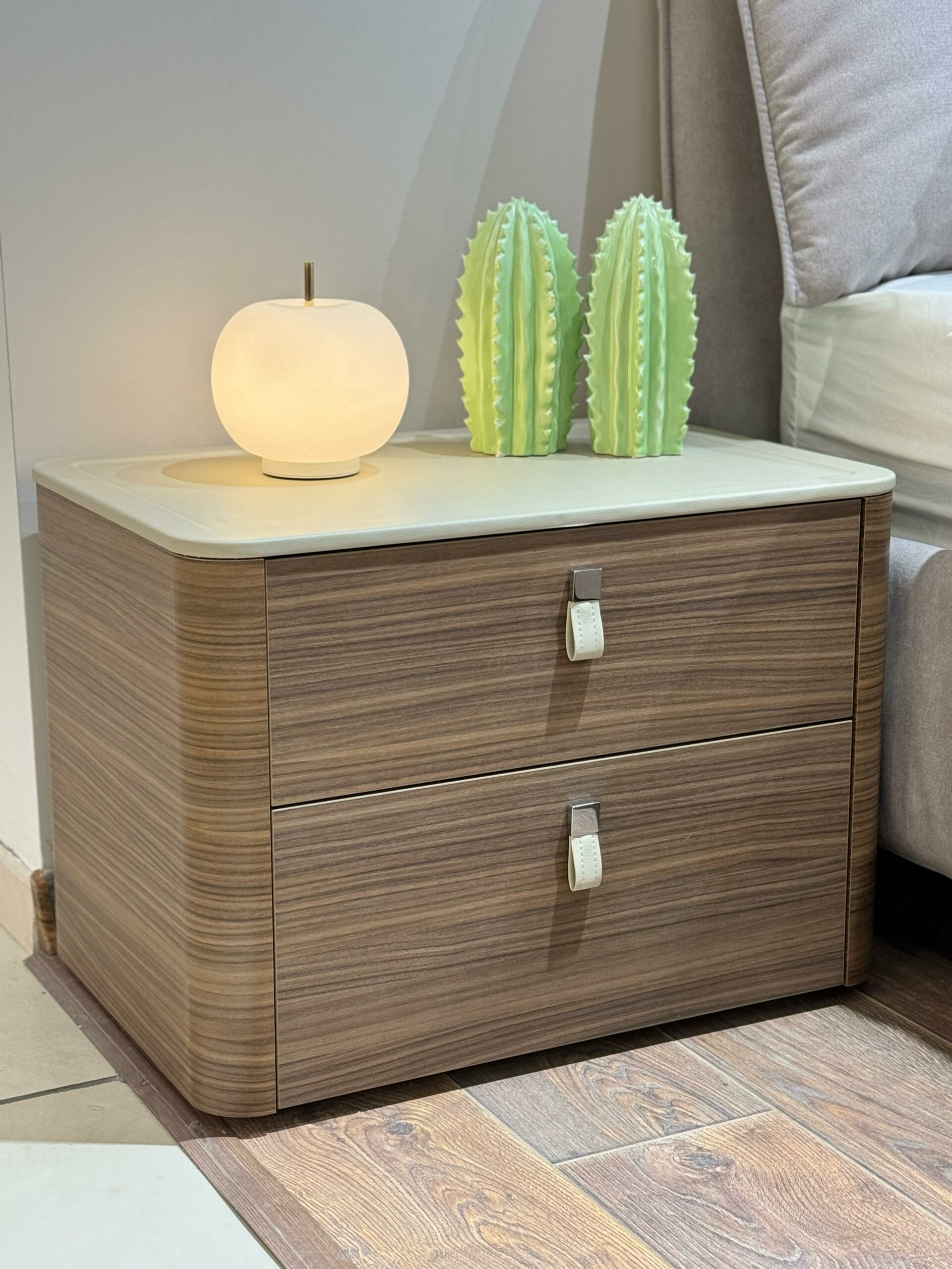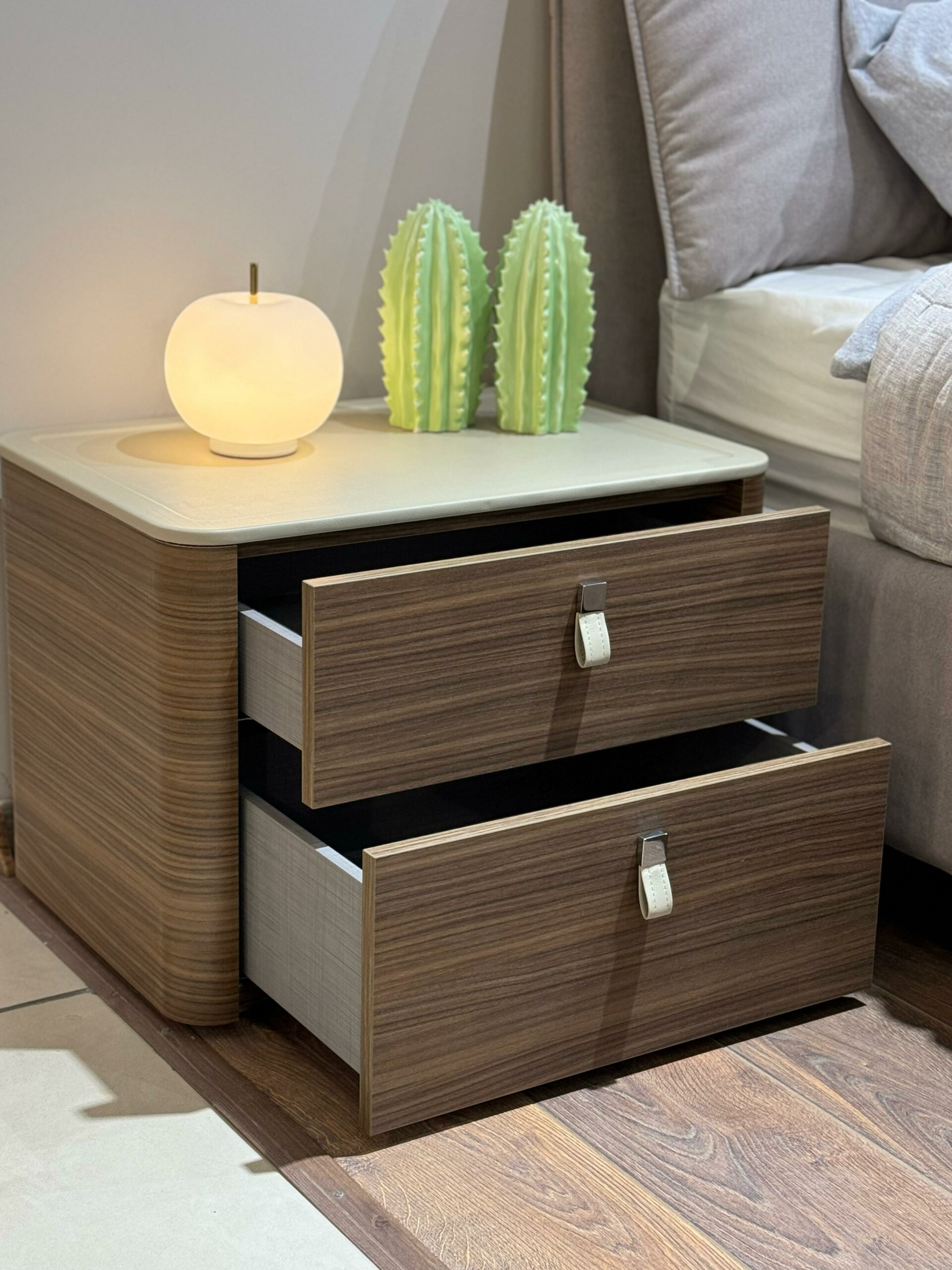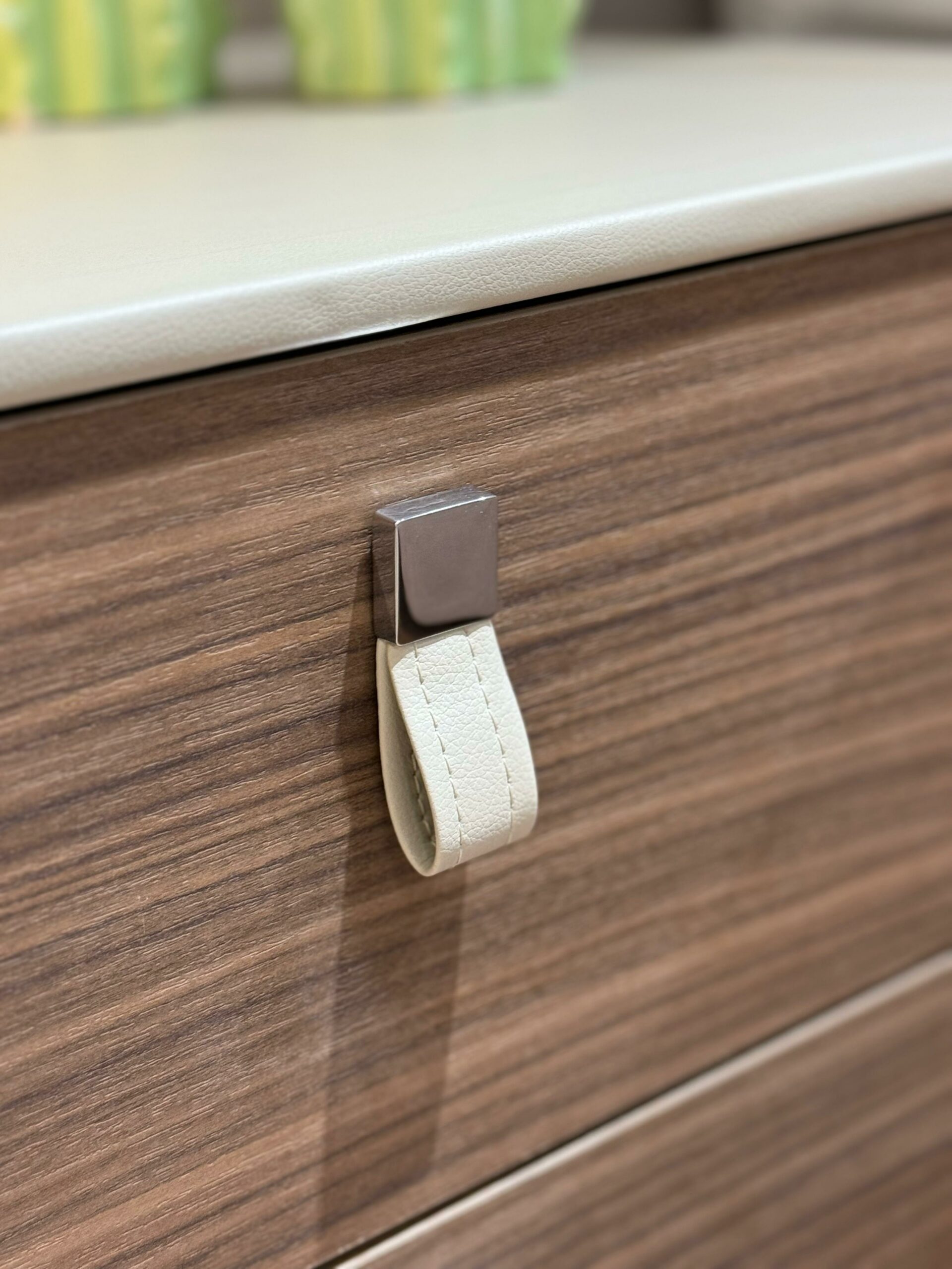 декоративные ручки на ящиках выполнены из регенерированной кожи