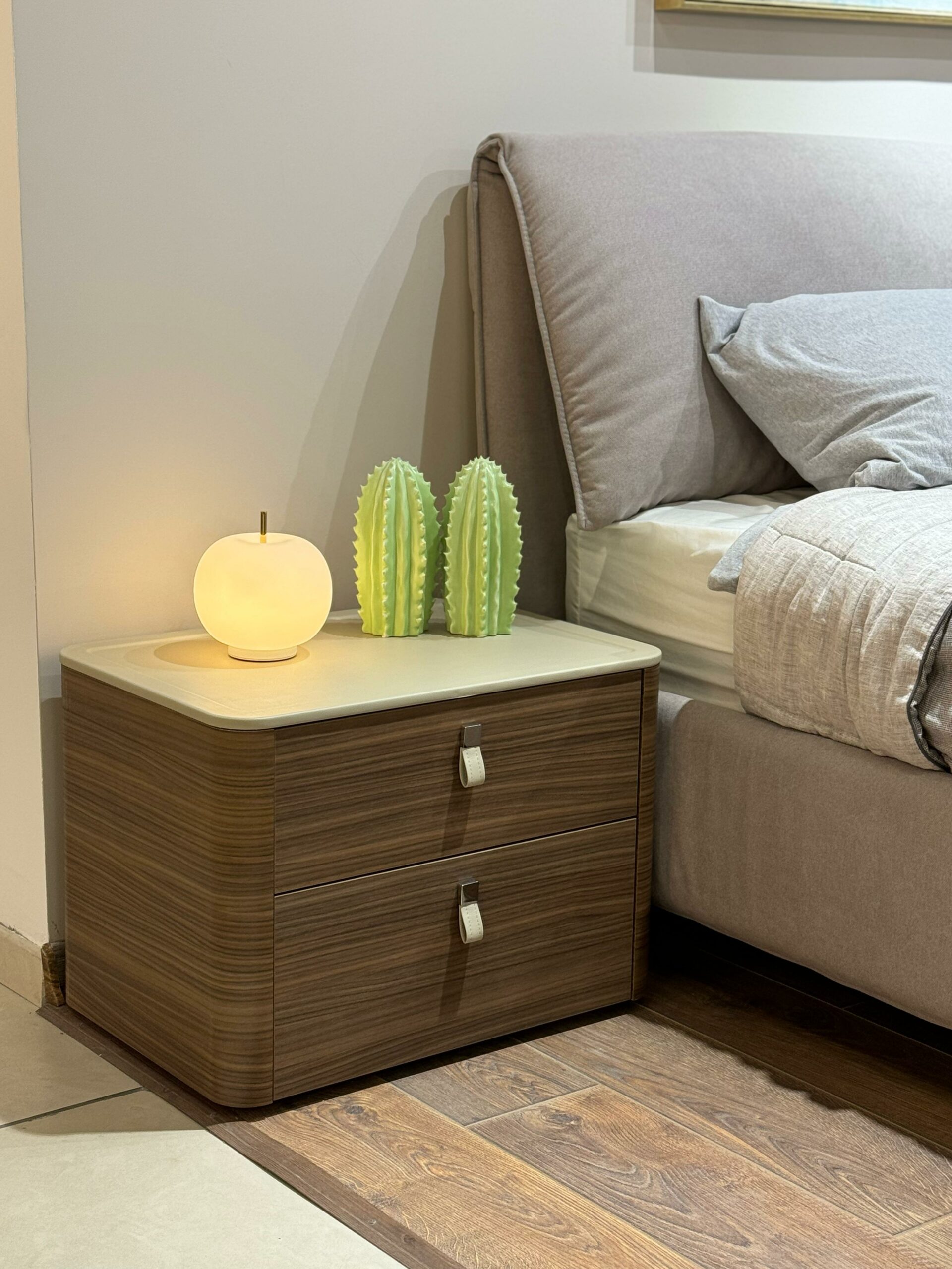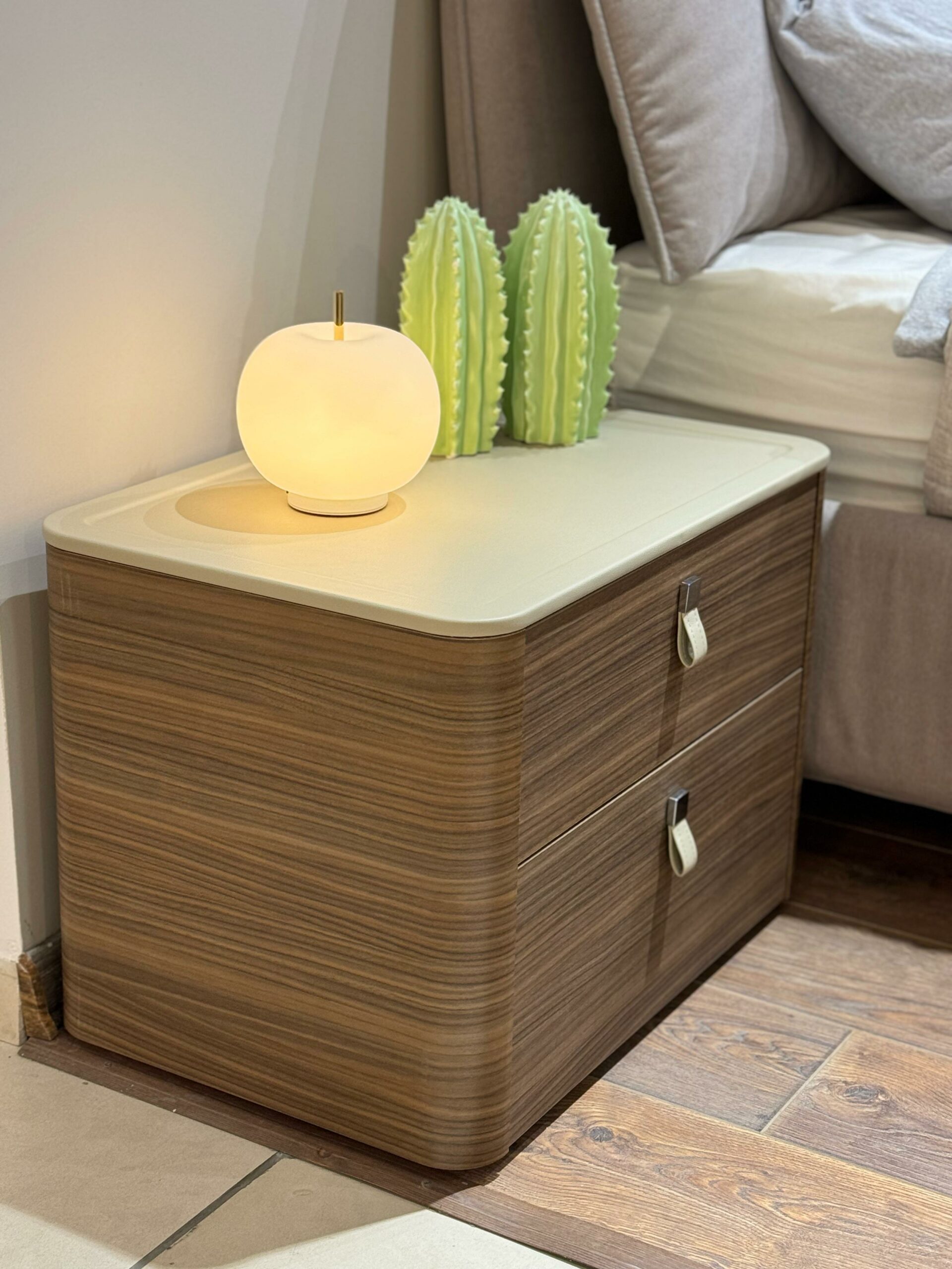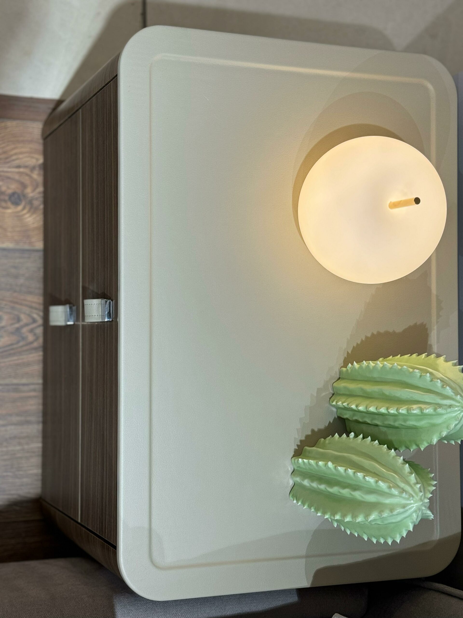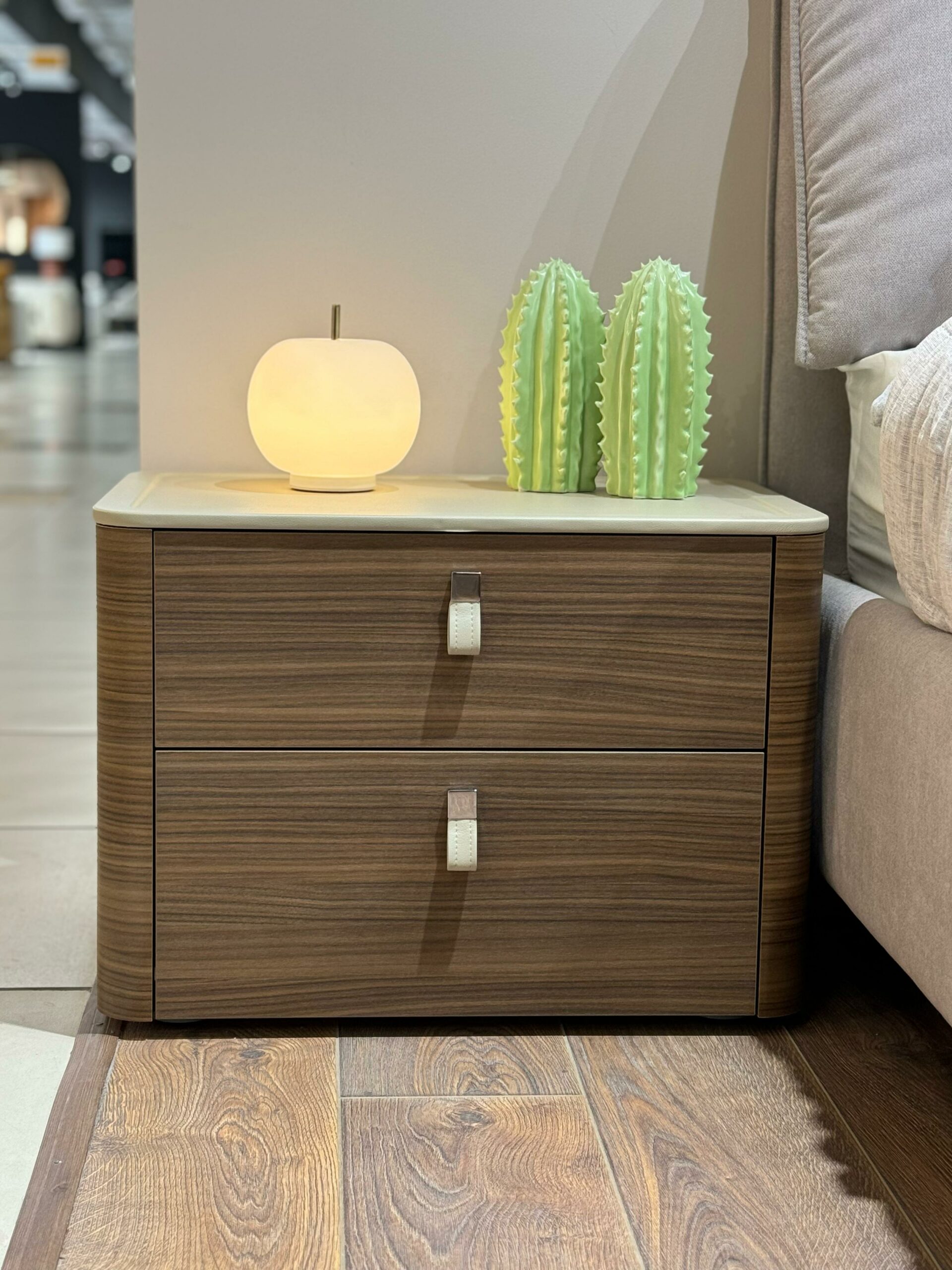 декоративные ручки на ящиках выполнены из регенерированной кожи