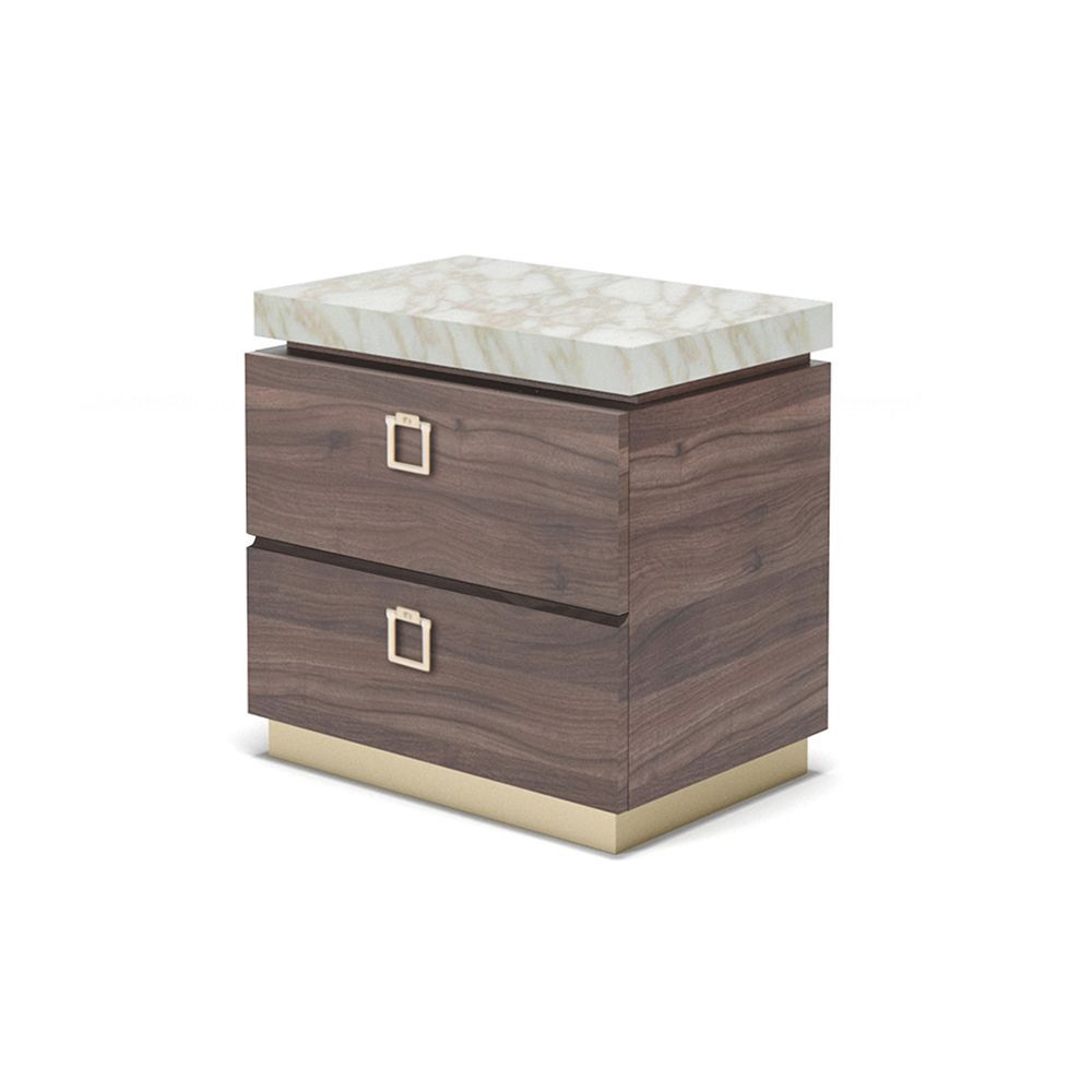 Прикроватная тумбочка CHICAGO от итальянской фабрики FORMITALIA — элегантное сочетание роскоши и функциональности. Столешница из золотого мрамора Calacatta придает интерьеру благородный блеск, а основа из металла с золотым покрытием подчеркивает статусность мебели. Декор дополнен шпонированными элементами и фирменными ручками.
