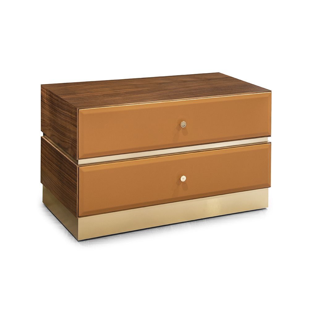 Прикроватная тумбочка CLARISSA от итальянской фабрики FORMITALIA — воплощение роскоши и функциональности. Изготовлена из шпона ореха Каналетто с выдвижным ящиком, отделанным кожзаменителем Cuoio. Металлическая основа и мягкая ручка из белого золота подчеркивают эксклюзивность дизайна.