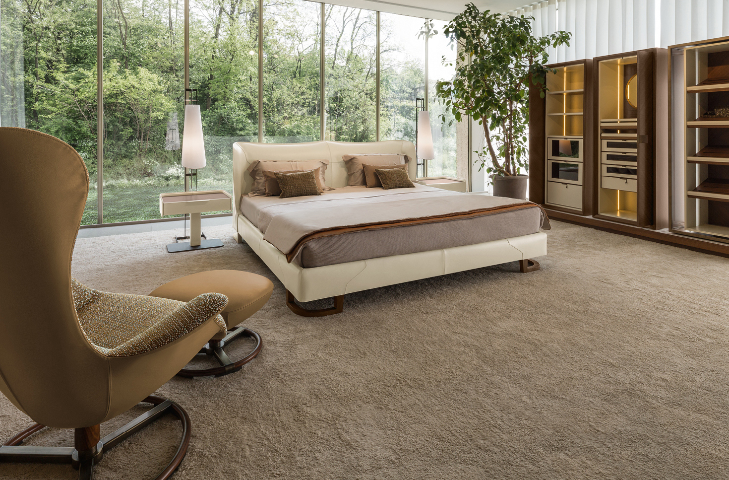 Представьте, как мягкий свет ночника отражается от благородной поверхности CORIUM, добавляя спальне тепла и уюта.