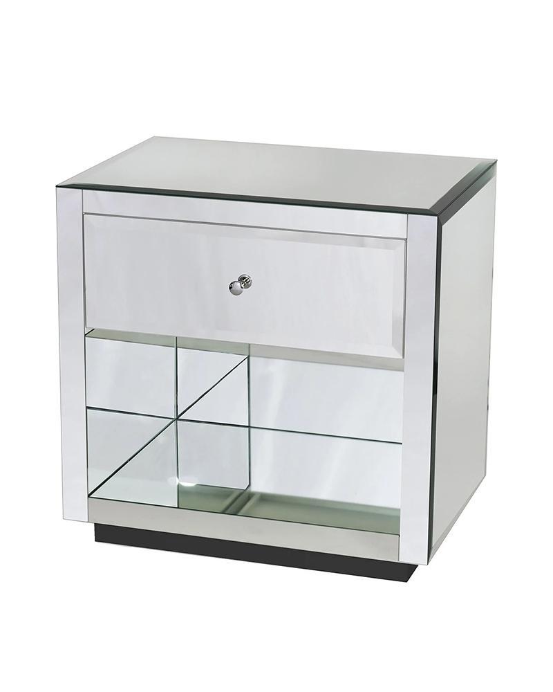 Прикроватная тумбочка SIDNEY от фабрики LOUVREHOME (Китай) сочетает современный дизайн с функциональностью. Лаконичная квадратная форма, зеркальная поверхность и аккуратный выдвижной ящик создают элегантный образ. Открытый нижний отсек идеально подходит для хранения книг или декора.