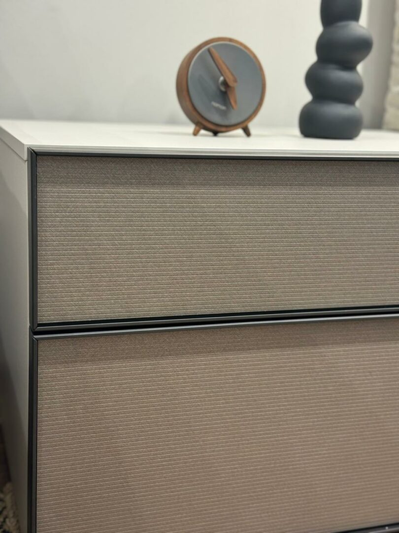 Каждый элемент коллекции VINCI несет в себе уникальный авторский дизайн, который выделяет его среди других. Стильная металлическая окантовка ящиков не только подчеркивает элегантность, но и увеличивает прочность фасадов, делая их долговечными и надежными. Коллекция VINCI воплощает в себе оригинальность и утонченность, превращая любую спальню в пространство, наполненное гармонией и уютом.