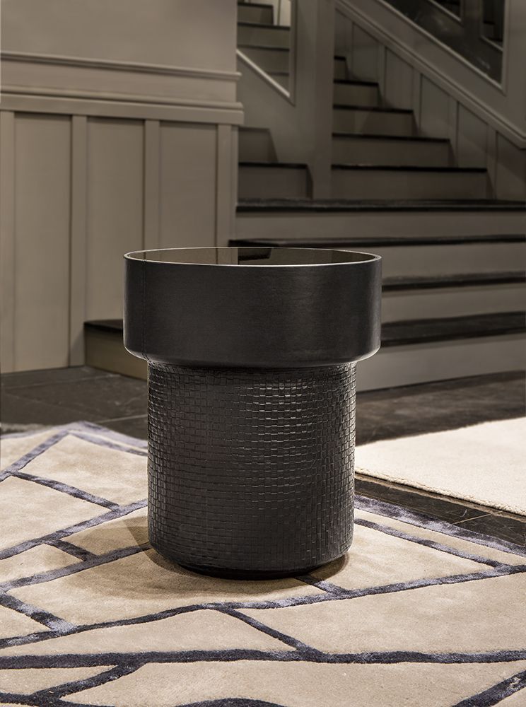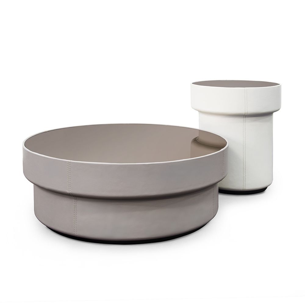 Приставной столик COIL от итальянской фабрики FORMITALIA – элегантное решение для современного интерьера. Кожа Daino цвета устрицы с тонкой строчкой гармонично сочетается с зеркальной бронзовой столешницей. Основание покрыто черным полуглянцевым лаком, подчеркивая изысканность дизайна.