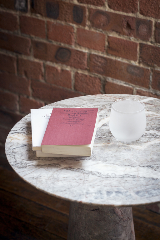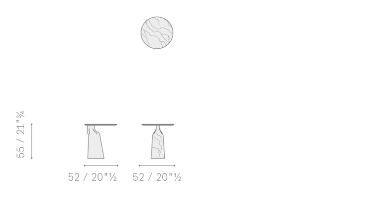 Ilary изготавливается из благородных материалов, что подчеркивает его статус и долговечность. Основание выполнено из массива ясеня, моки или гаваны, а столешницы из великолепного мрамора Calacatta Oro или Fior di Pesco, что придаёт изделию элегантный и роскошный вид. Нижняя полка из черной березовой фанеры добавляет функциональности и стиля. Два меньших круглых столика выделяются основанием из матовой полированной стали, гармонично сочетающимся с обивкой из кожи Cuoio Saddle или массивом ясеня.