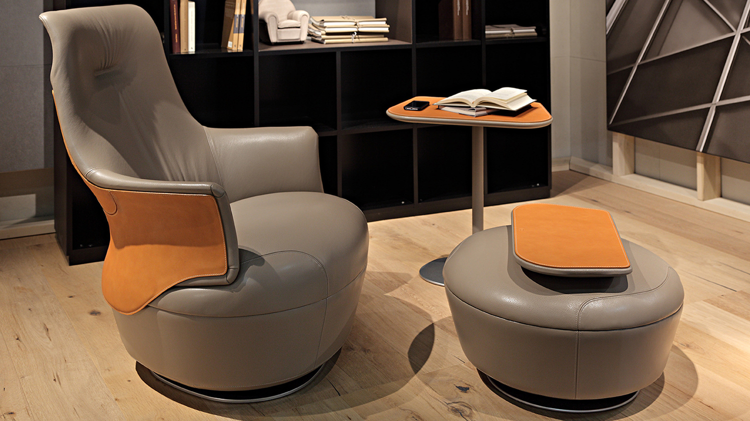 С первого взгляда пуф Assaya привлекает внимание своей элегантной формой и утонченными линиями. Конструкция включает в себя уникальную спинку и подлокотники, выполненные из жесткого полиуретана, что обеспечивает оптимальную поддержку и комфорт. Обивка из кожи Cuoio Saddle Extra в сочетании с изысканной кожей или тканью Pelle Frau® на внутренней стороне создает гармонию в дизайне, а видимая контрастная строчка добавляет нотку шика.