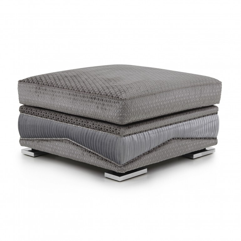 Элегантные металлические ножки доступны в позолоченном, хромированном, бронзовом или теневом исполнении, что позволяет адаптировать пуф под любой стиль интерьера. Его размеры — высота 51 см, ширина и глубина по 90 см, что делает его идеальным для гостиных и других помещений.