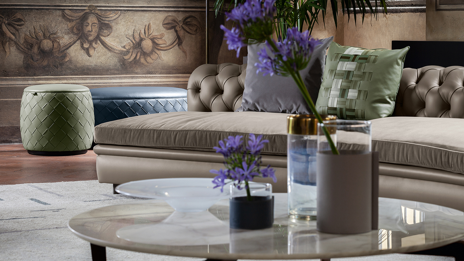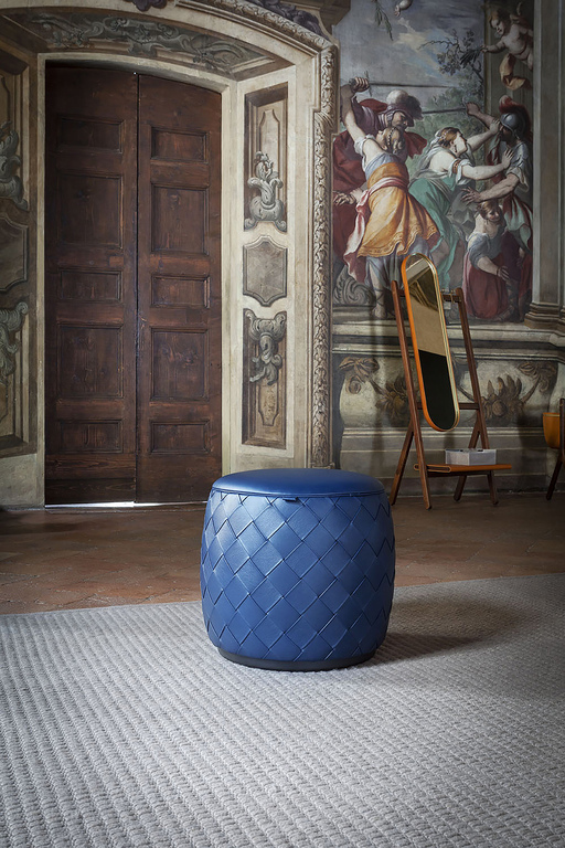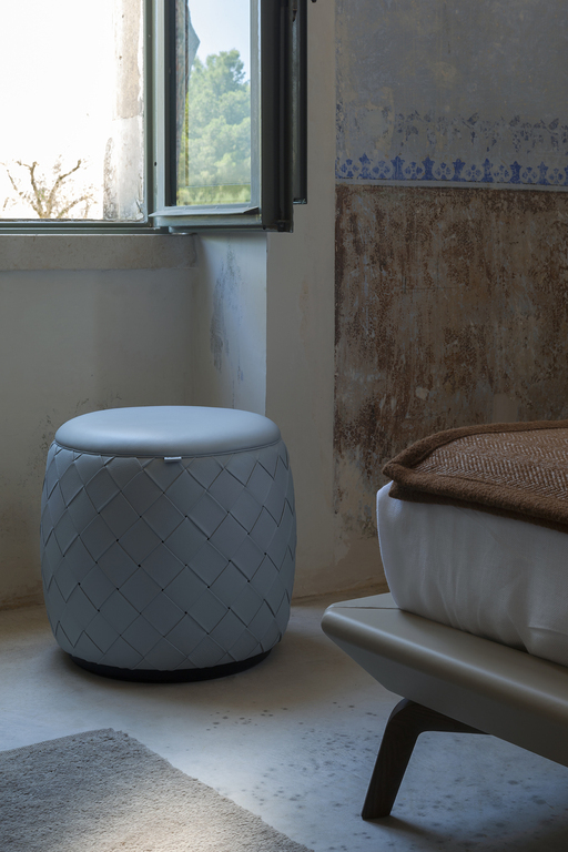 Пуф Grant доступен в нескольких размерах и вариантах отделки, включая квадратные и прямоугольные формы. Каждая модель украшена двумя ремнями, которые элегантно обвивают конструкцию, добавляя нотку утонченности. Стальные пряжки, использованные в основании ремней, служат не только функциональным элементом, но и стильным акцентом, подчеркивающим роскошь изделия.