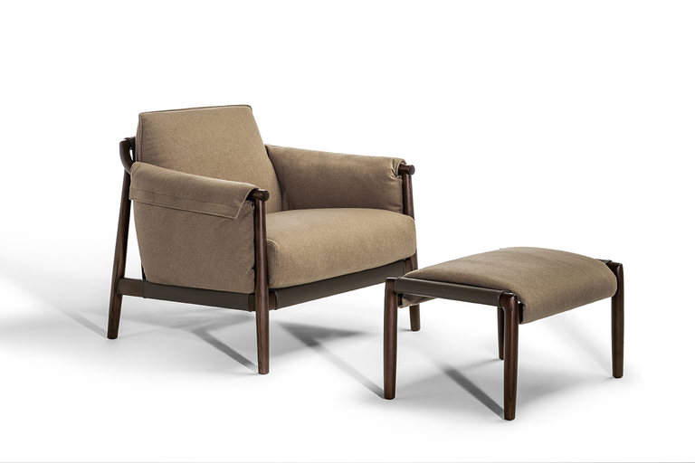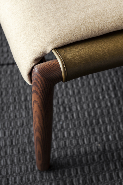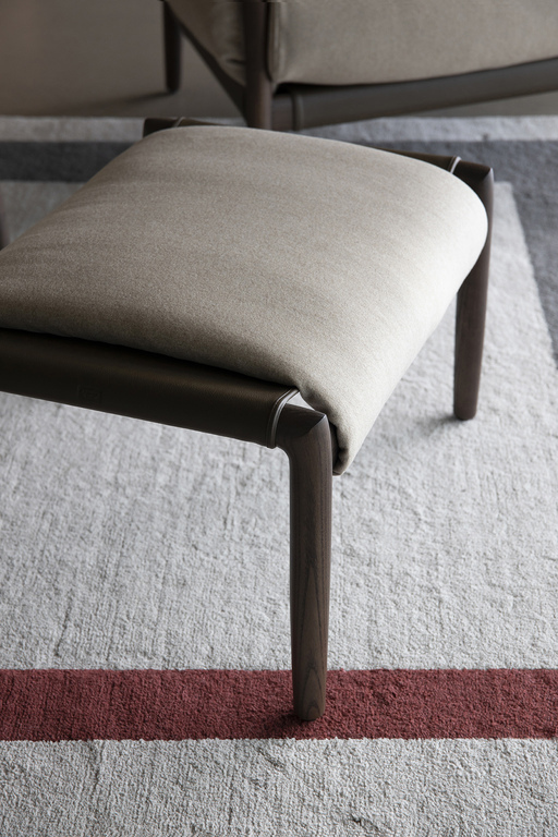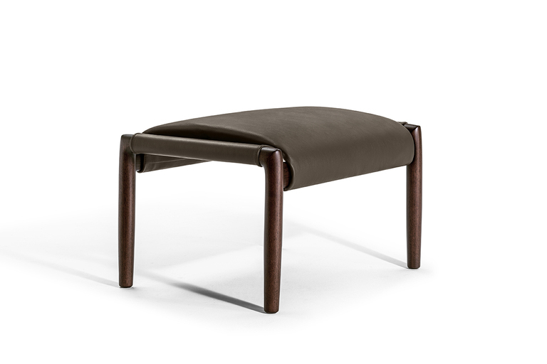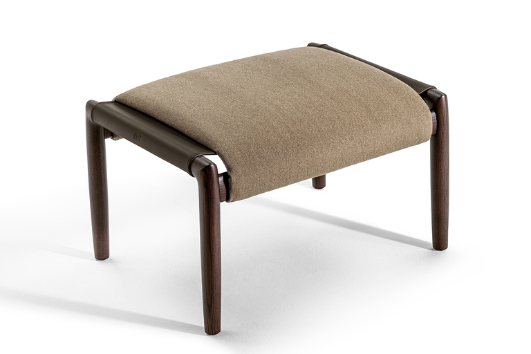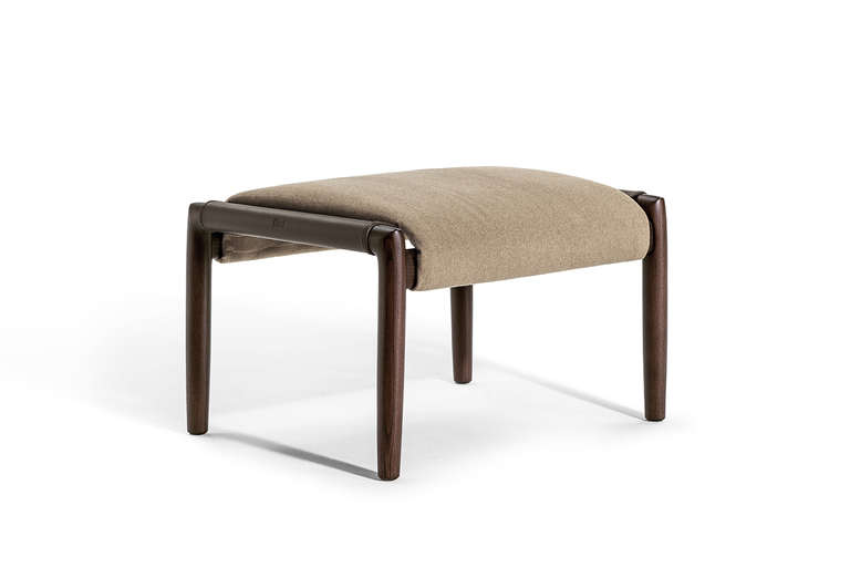 Структура пуфа выполнена из прочного ясеня, который обеспечивает надежность и долговечность. Его уникальный дизайн включает две стойки круглого сечения, соединенные овальными стержнями, что создает гармоничное единство с креслом из той же коллекции. Пуф доступен с отделкой, окрашенной в моку или венге, что позволяет вам выбрать идеальный вариант под ваш интерьер.